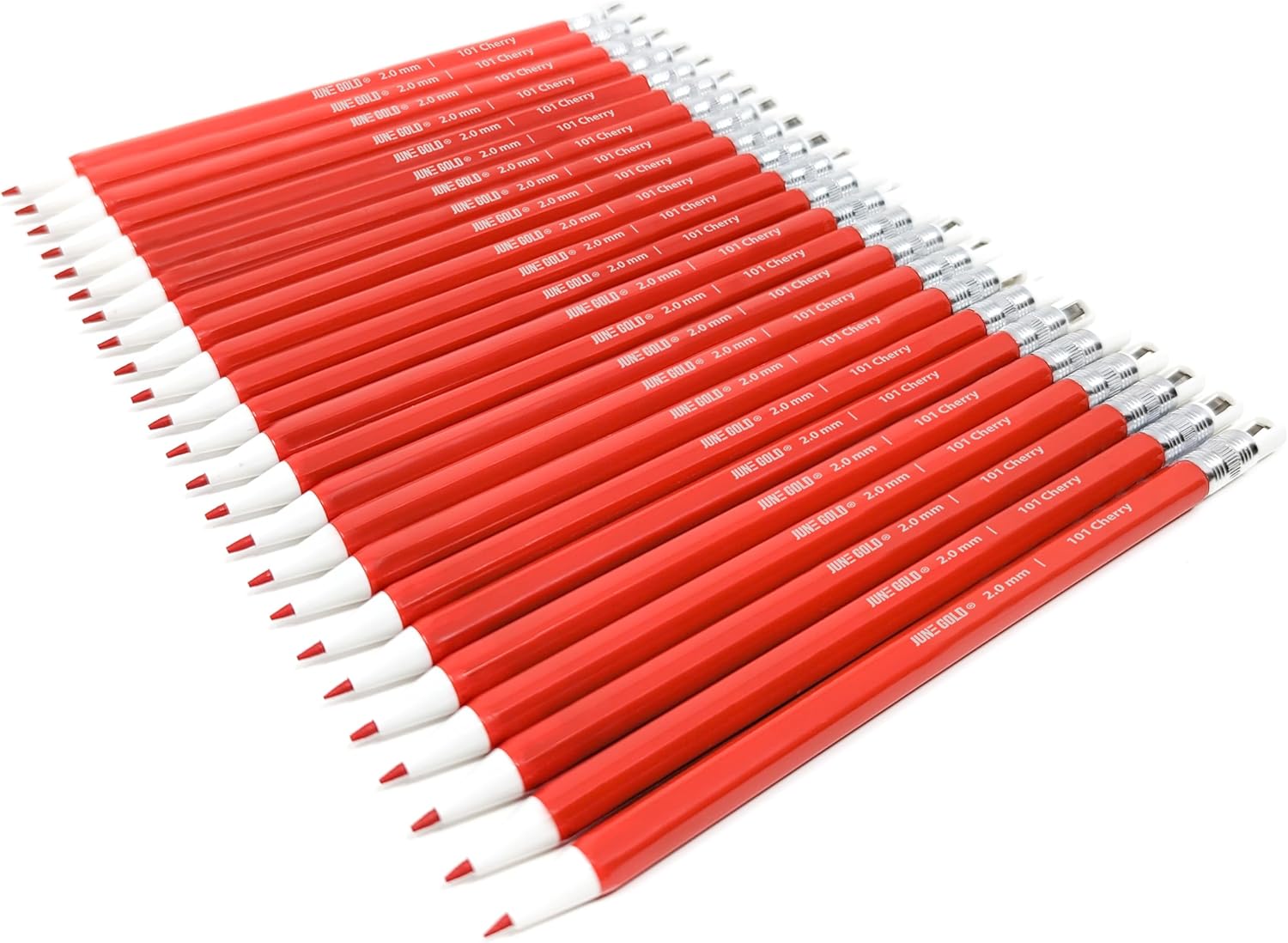 - MECHANICAL PENCILS: Each of the 24 red (Cherry #101) colored pencils are pre-filled with 1 red sharpened and bold 2.0 mm lead that is color matched to the pencil. All pencils contain a built-in sharpener located on the back of each pencil. The hexagon barrel is easy to grip and prevents your pencil from rolling away.