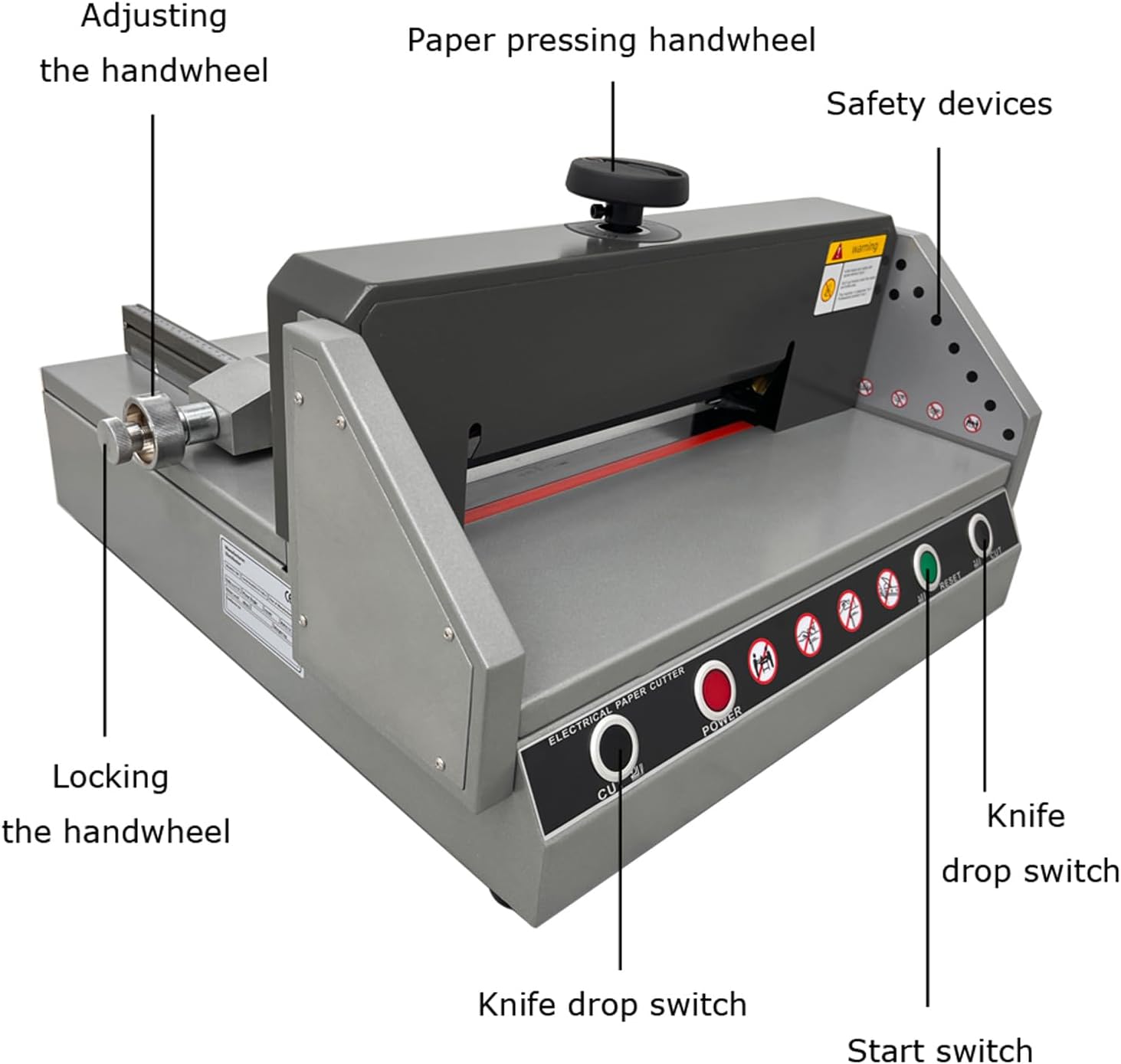 - 【Wide Application】This machine can be used in small and medium-sized printing enterprises, copy shops, offices, etc. It can cut paper, books, pictures, document files, and other non-metallic materials.