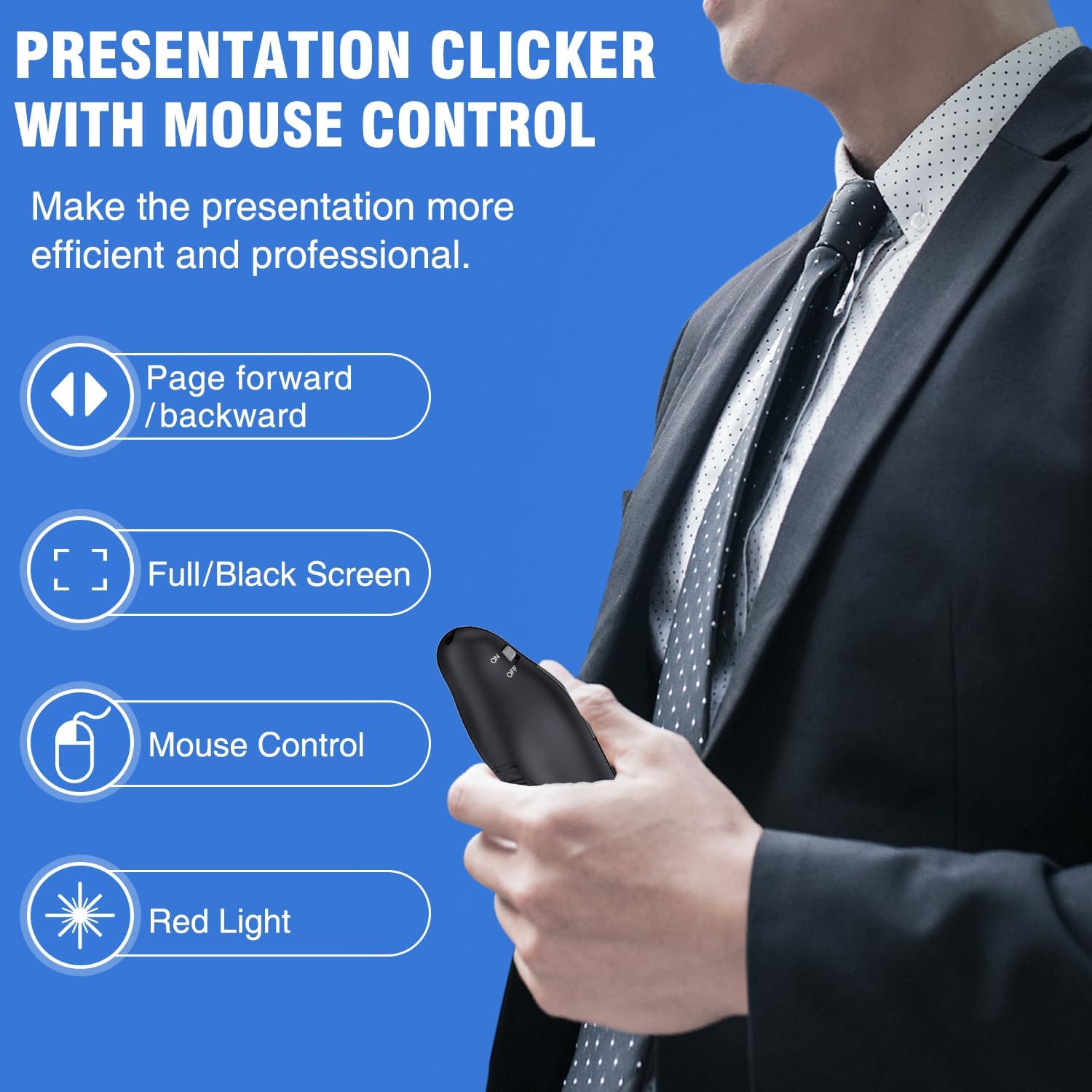 - 【Bright Red Light & Long Range Control】 This presentation pointer features a bright red light that effectively highlights key points on slides, ensuring visibility for the audience. With long-range control, you have the freedom to move around the room without any restrictions from your computer, maintaining a seamless presentation experience