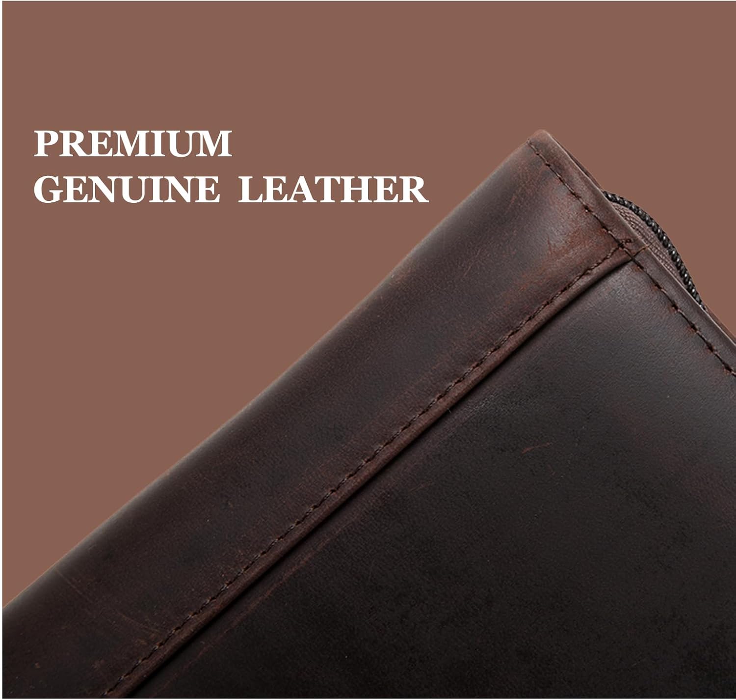 - Crazy Horse Leather: The characteristic of Crazy Horse leather is that it is easy to leave scratches, which makes it unique. The leather's surface has a two-tone effect, where the color lightens when it is scratched or rubbed, creating a distressed and weathered appearance over time. Our handmade full-grain leather portfolio exudes sophistication, with its rich and natural patina, making it a classic and luxurious accessory for professionals.