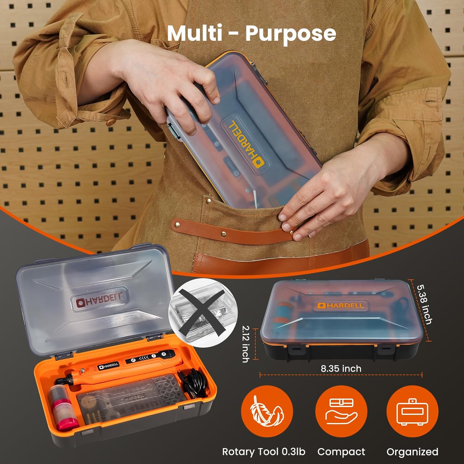 - 【Compact and convenience】This rotary tool is powerful yet small and light (only weight 0.35lb), giving you ultimate control and precision, as well as comfort, just like holding a pen. And it comes with a waterproof, shockproof, and moisture-resistant storage case, which keeps everything securely organized and preventing loss.
