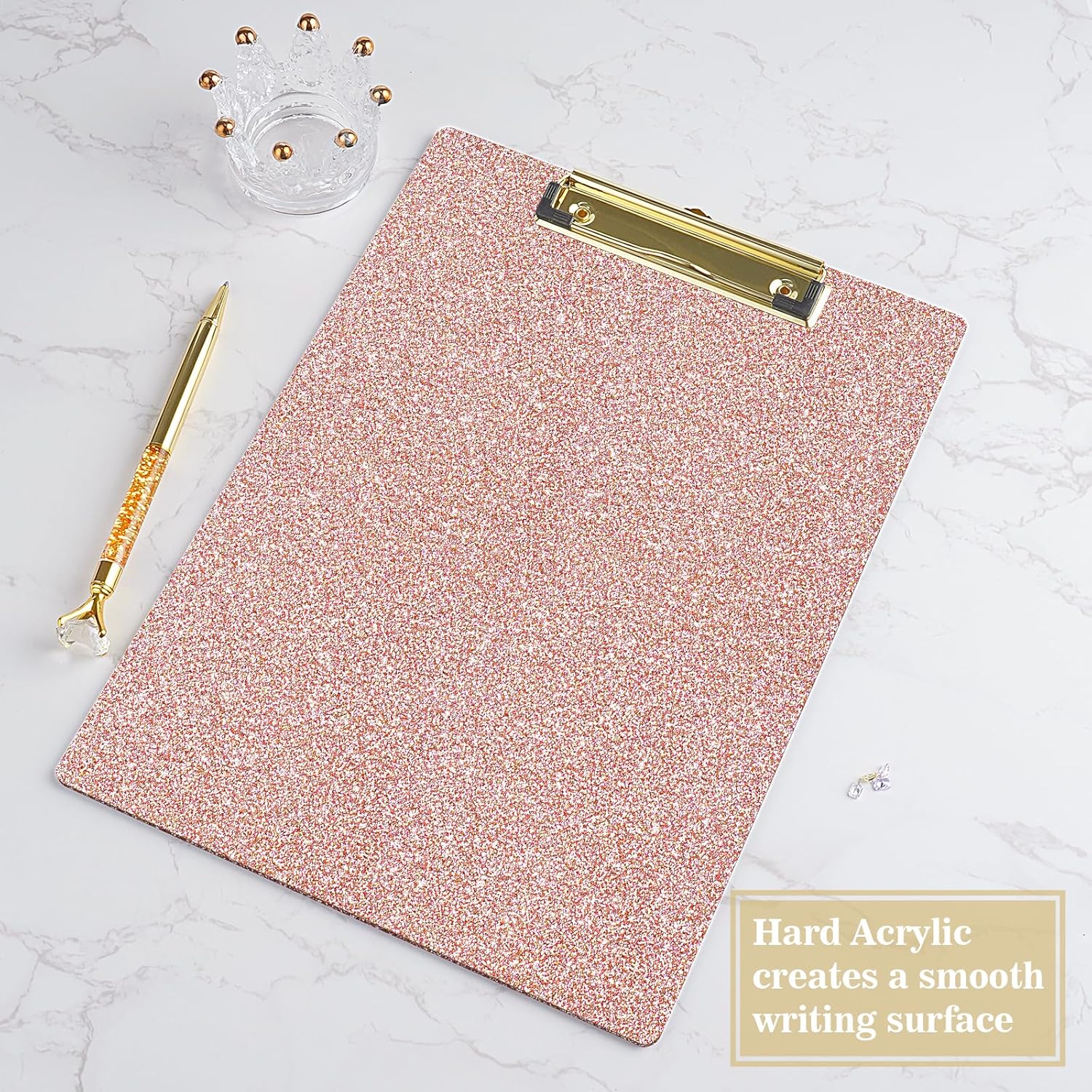- Materials and Workmanship: Glitter clipboard with high-gloss clear surface and sturdy base, provides a smooth, portable writing area. Made of Acrylic and glitter mix pouring , designed with durable rounded corners edges, long-lasting, anti-fray and provide a comfortable hold.