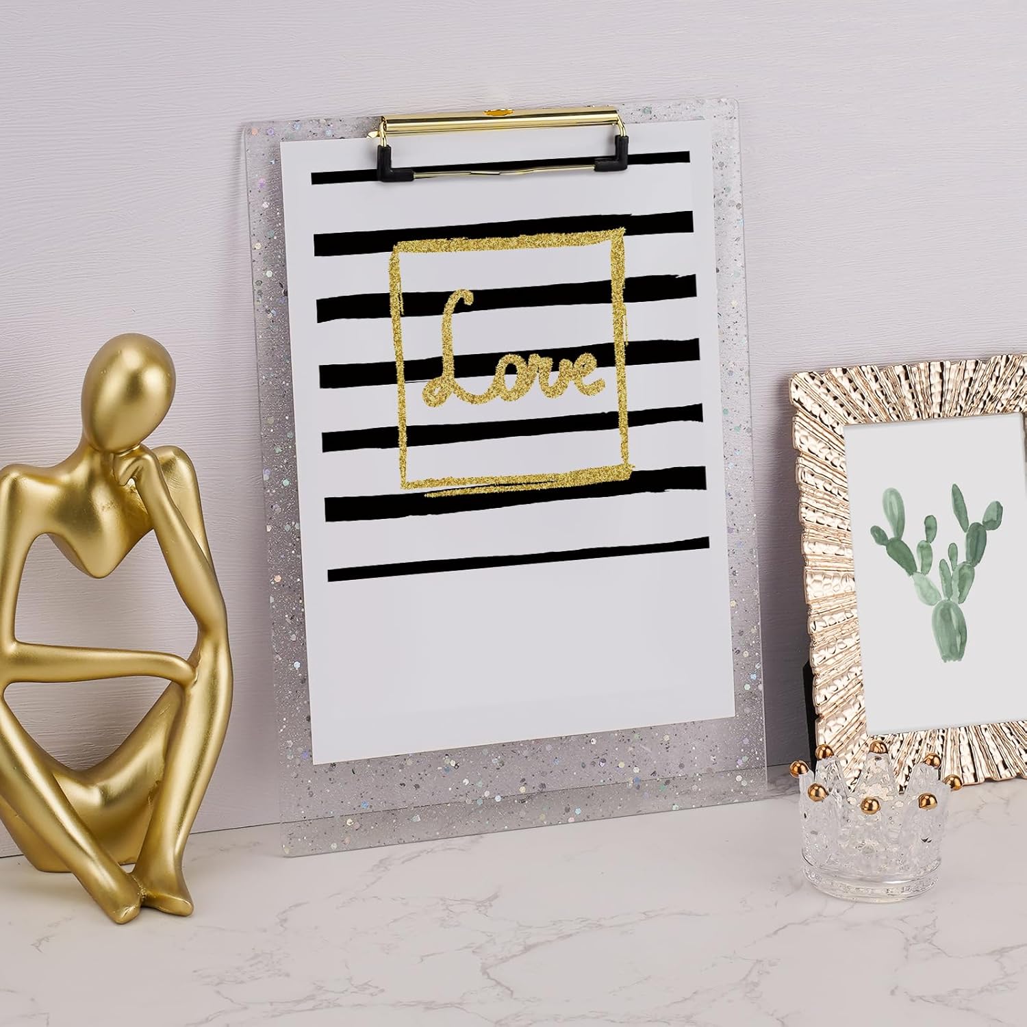 - Materials and Workmanship: Glitter clipboard with high-gloss clear surface and sturdy base, provides a smooth, portable writing area. Made of Acrylic and glitter mix pouring , designed with durable rounded corners edges, long-lasting, anti-fray and provide a comfortable hold.