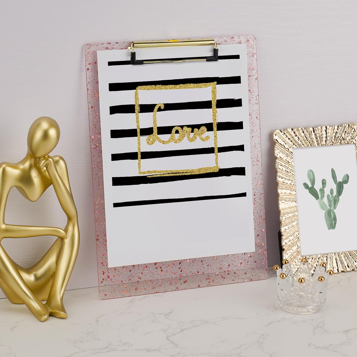Hongri Plastic Acrylic Glitter Clipboard, 8.5x11" Stardard Letter A4 Size Clipboards for Classroom, Taecher, Women.Cute Confetti Clip Board, Office Supplies, School Supplies.