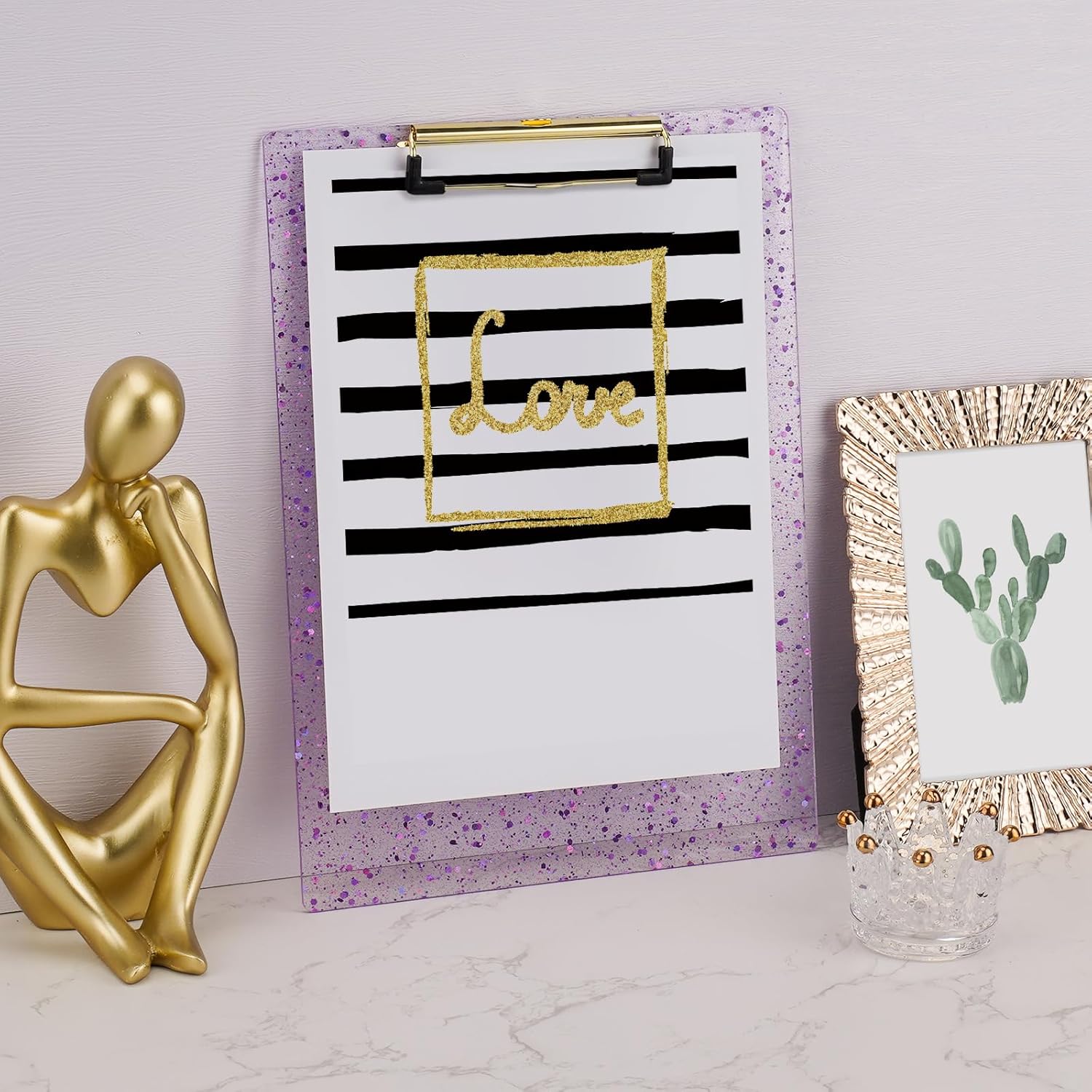 - Materials and Workmanship: Glitter clipboard with high-gloss clear surface and sturdy base, provides a smooth, portable writing area. Made of Acrylic and glitter mix pouring , designed with durable rounded corners edges, long-lasting, anti-fray and provide a comfortable hold.