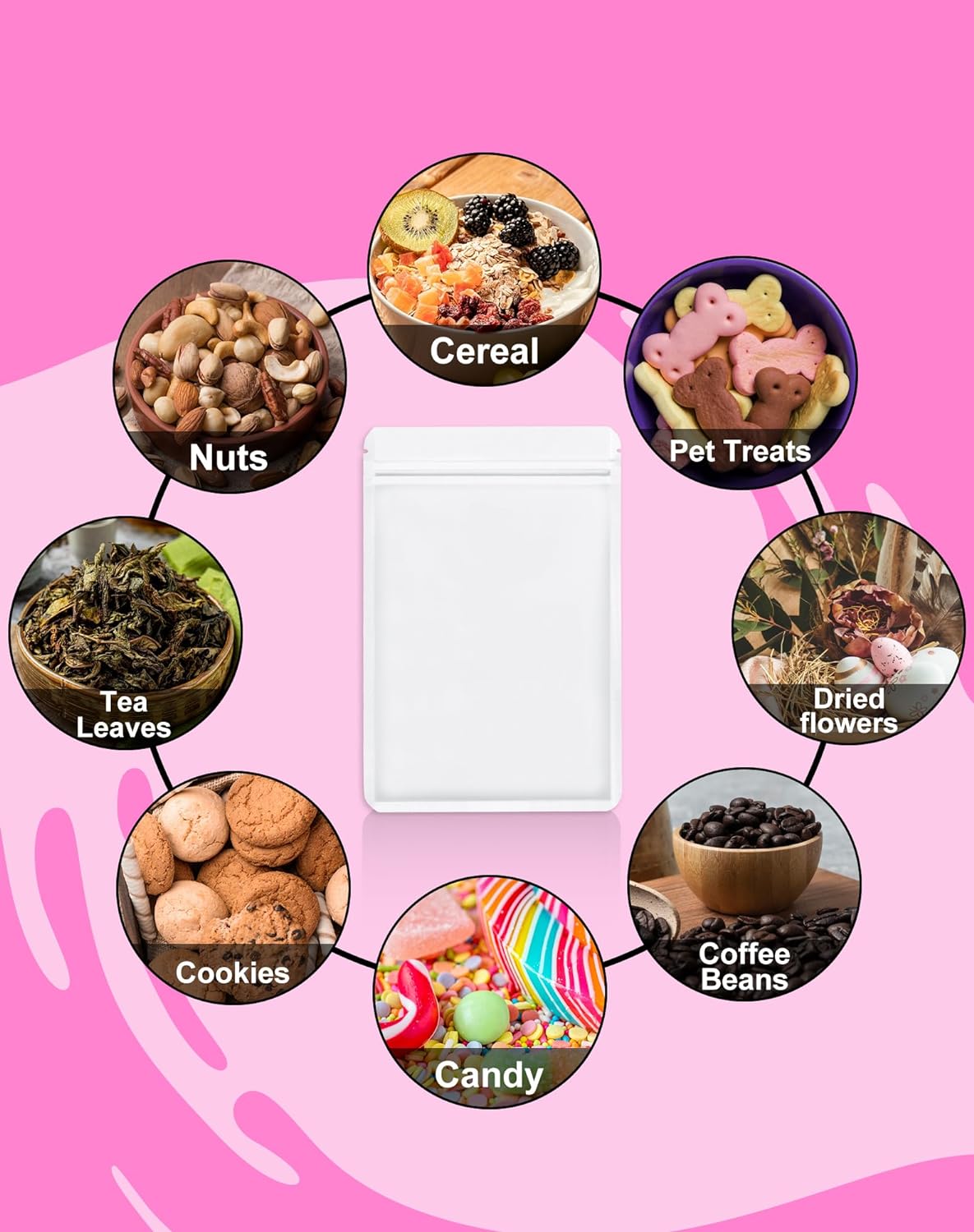 100 Pack Resealable Packaging Bags for Small Business Double-Sided Color Smell Proof Bags for Food Storage Flat Bags (White, 4.7" x 7.1")