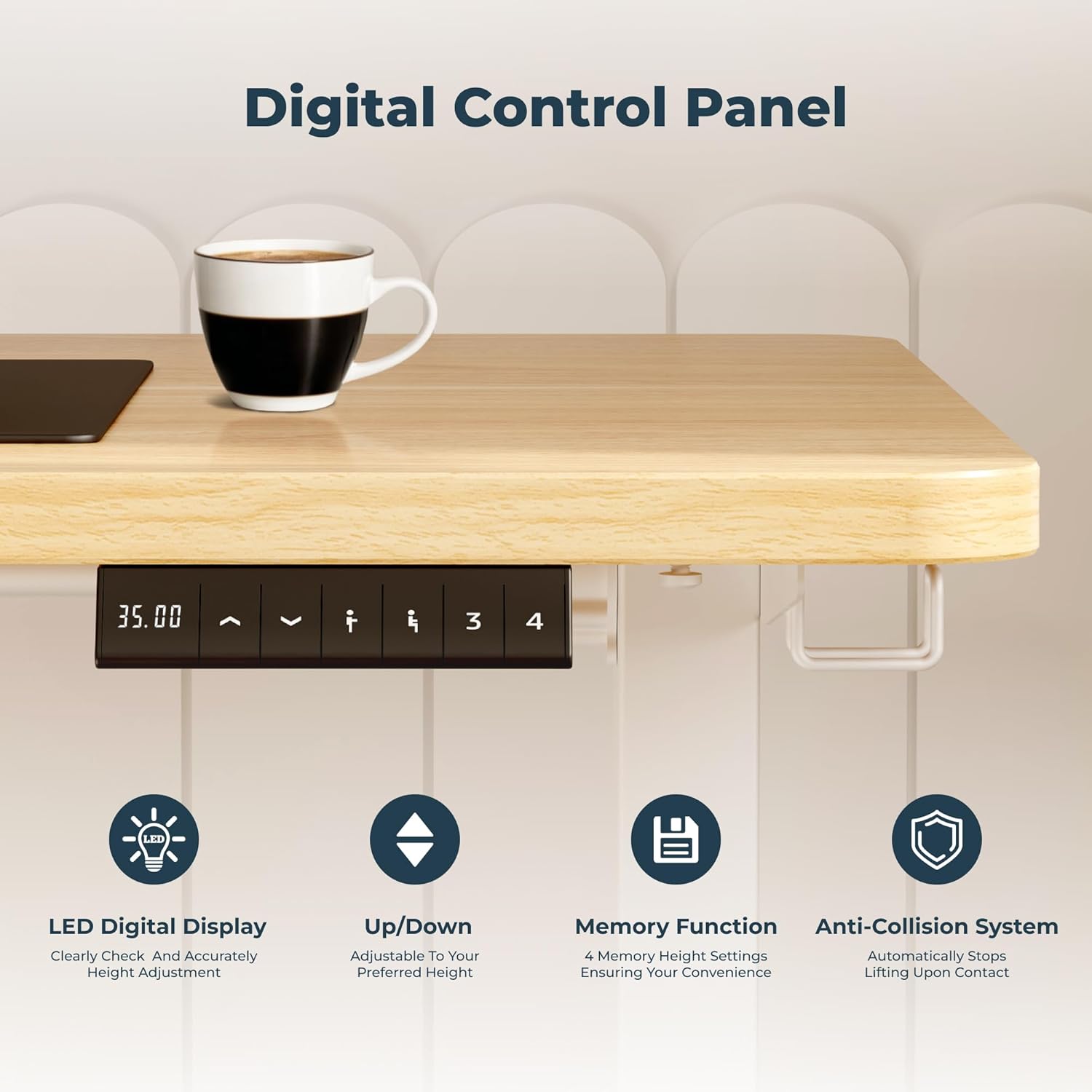 Adjustable Stand Up Desk with Memory Preset,Electric Standing Desk 55x 24 Inch Home Office Desk Computer Workstation Sit Stand Desk, Splice Maple Top + White Frame