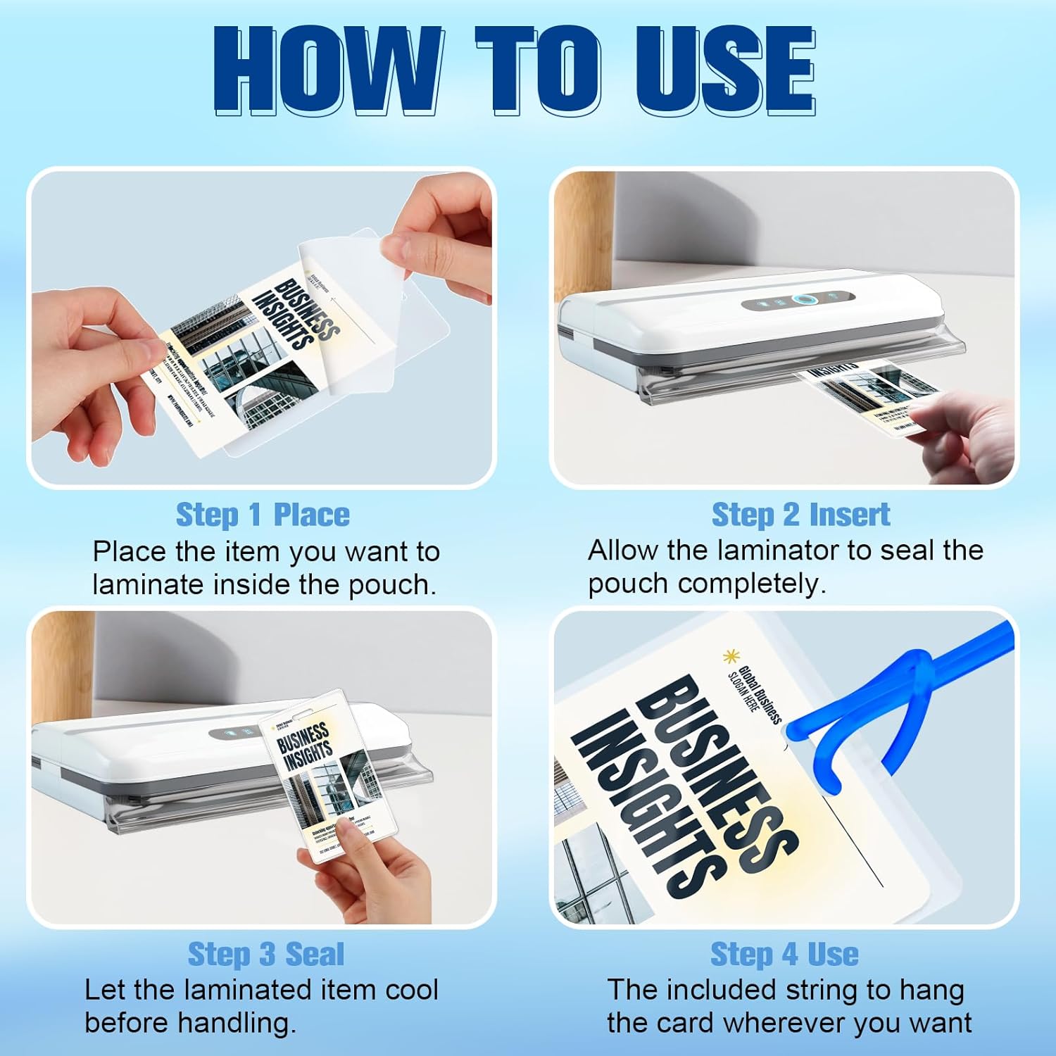 - Durable Material: The laminating pouch with colorful Loop sealing temperature is recommended to be 257°F-266°F, anti-tear, anti-scratch, anti-dirt, waterproof, more effective protection of your business cards, longer-lasting use.