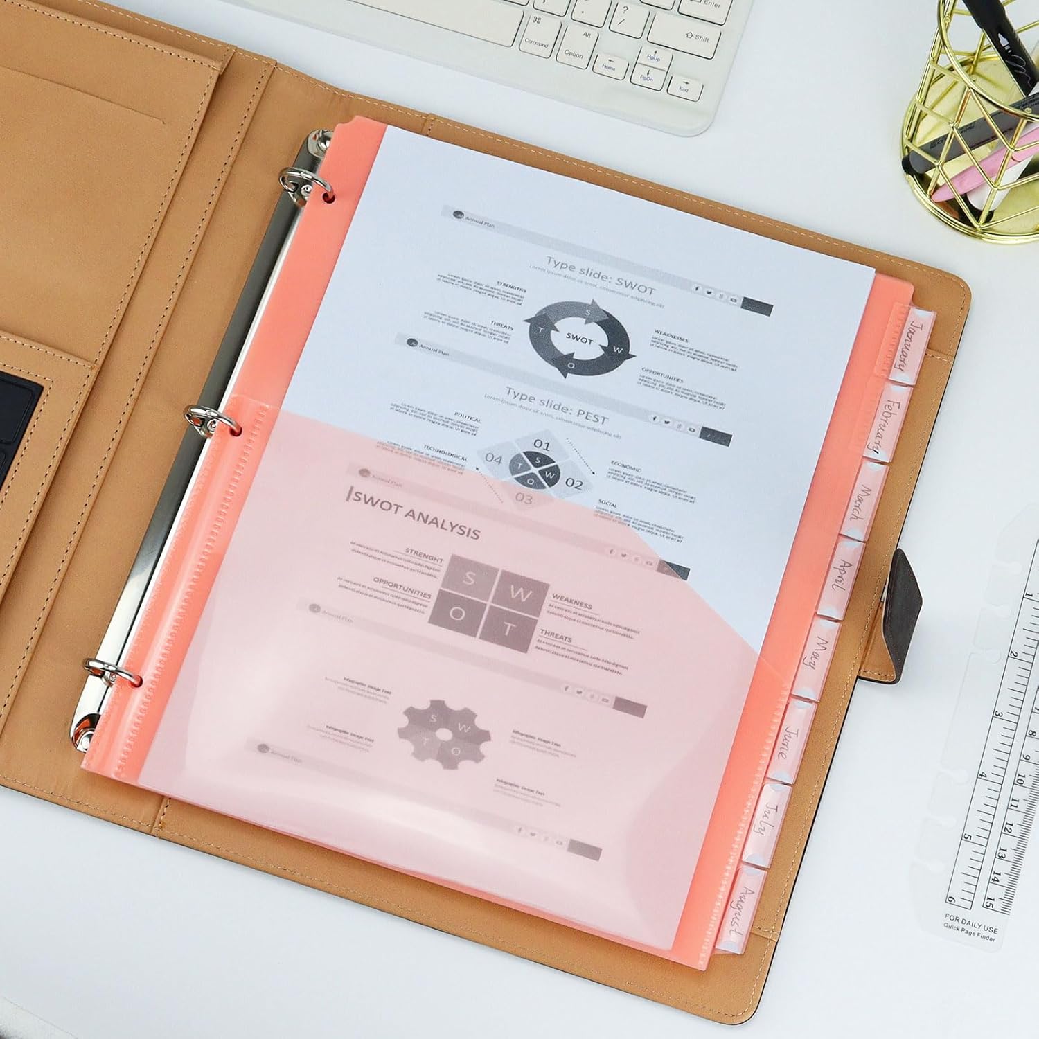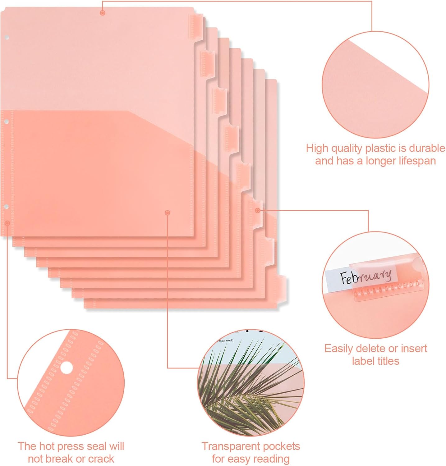 - 【Translucent Front Pocket】Each plastic dividers features a front pocket, are the perfect way to store loose papers in your 3-ring binder divider, and the semitransparent design also offer clear and easy browsing.