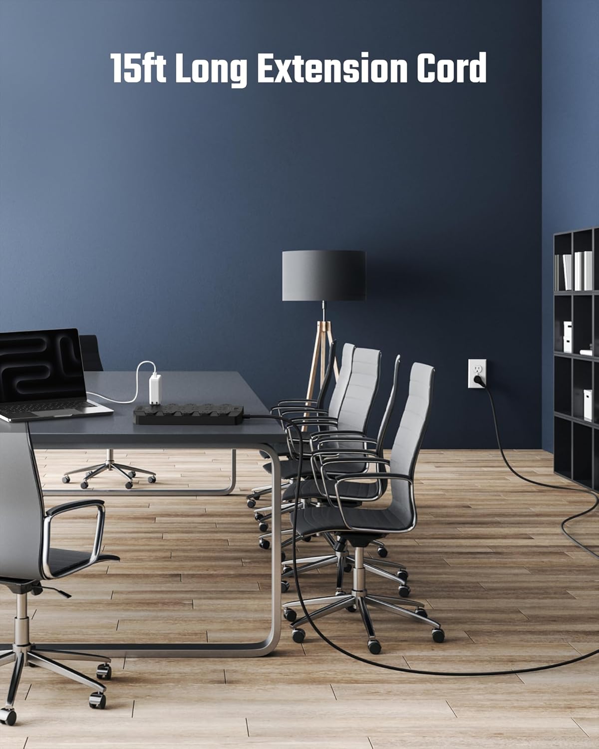 - 【All-Round Safety Protection】8-fold safety protection: 2100J surge protection, overload protection (15A), over-current protection, short-circuit protection, over-voltage protection, overheat protection, grounded protection, and flame-retardant (rated UL94 V-0, the highest level of fire resistance for casing materials). The power strip is fully compliant with FCC and RoHS safety standards, and reinforced with a UL-Recognized extension cord and flat plug. (1875W/15A)