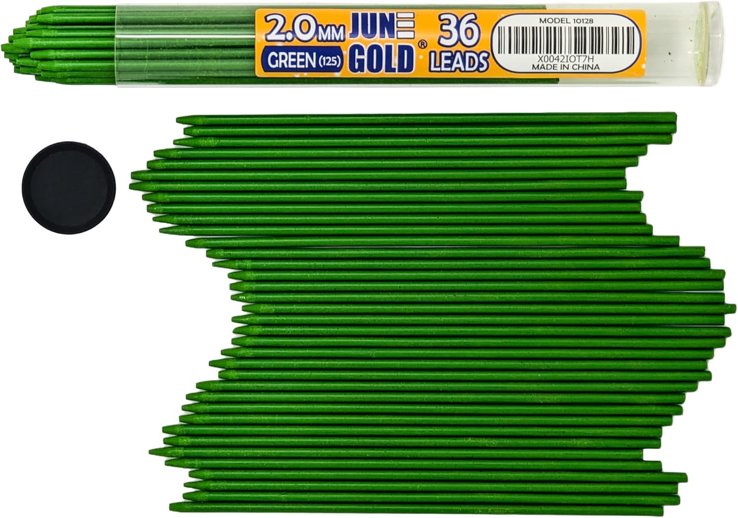 June Gold 36 Green (Parakeet #125) Colored 2.0 mm Lead Refills, Bold Thickness for Heavy Use, Break Resistant with a Convenient Dispenser