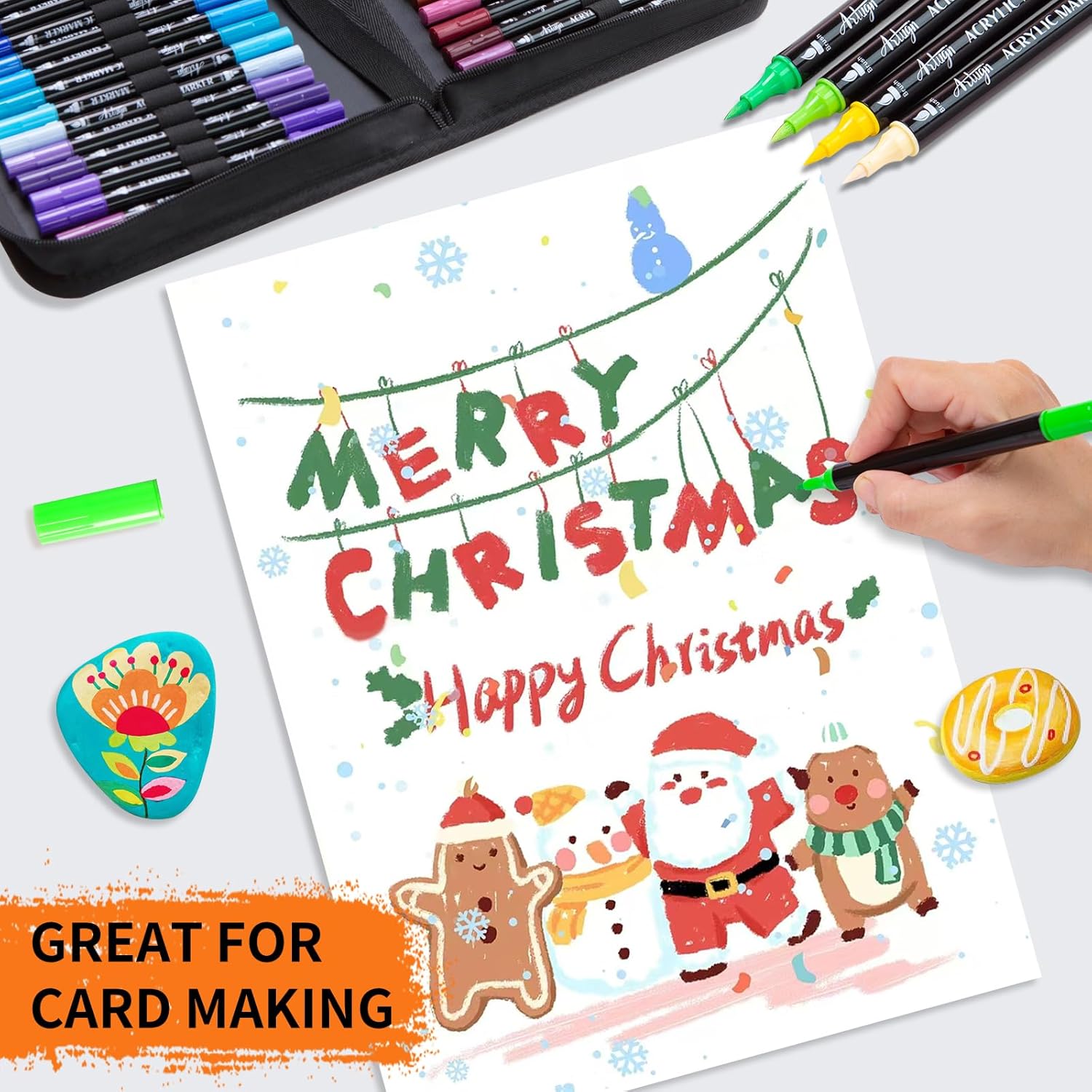 - Multi-Purpose: Enjoy creating art projects on a variety of surfaces, works for rock painting, ceramic, glass, wood, fabric, stone, metal, plastic, canvas, Christmas ornament, Halloween pumpkin painting, calligraphy, scrapbook, bullet journal, brush lettering, Christmas card, birthday present, greeting card, or any DIY crafts projects.