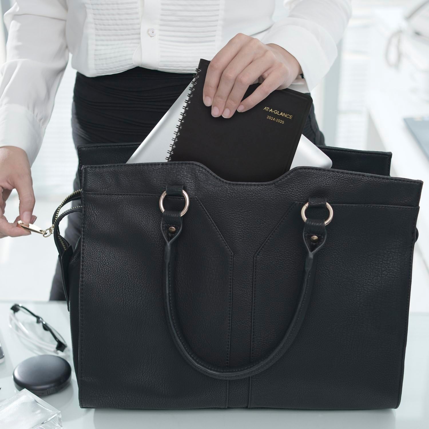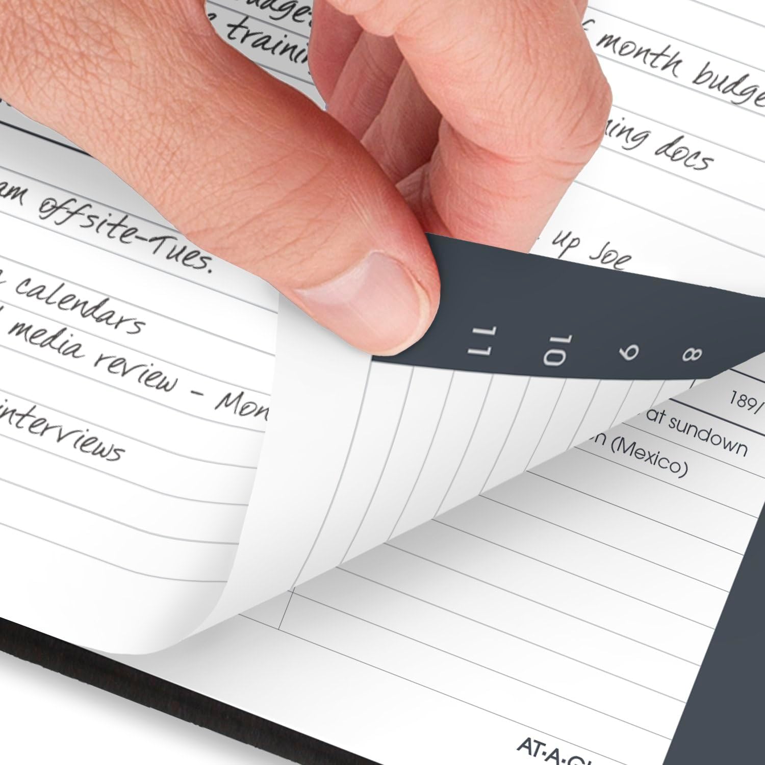 - PROFESSIONAL DESIGN – Take charge of your schedule with classic style. Planner has a black faux leather cover and twin wire binding to help prevent snags and secure pages.