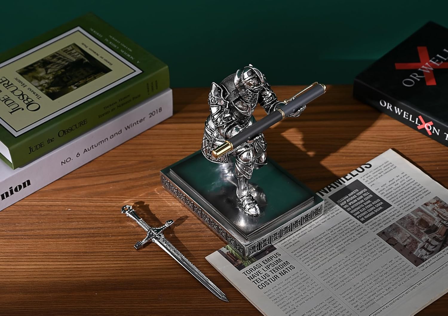 - [Knight Gift]: This king's guard knight pen holder for desk with fantastic shape, looks great on desk ornament for you. Perfect as Company prize, Birthday, Christmas, New year's Day Gifts and others. It suitable for offices, study and living room etc.