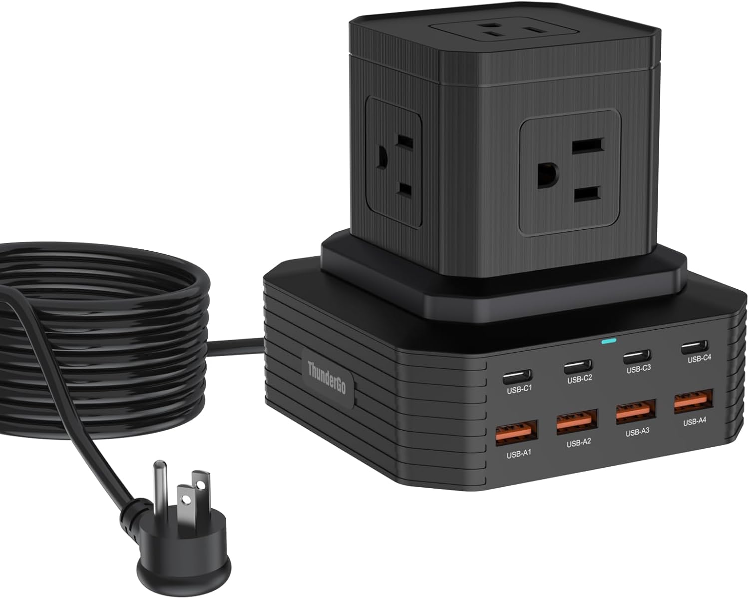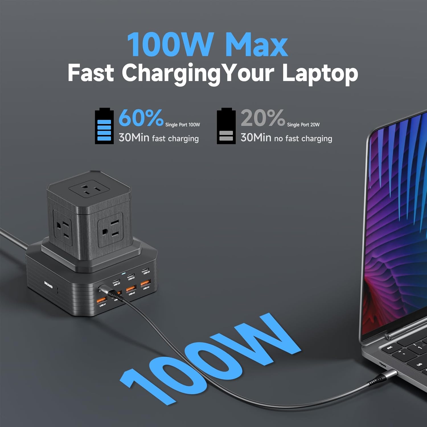100W USB C Charging Station 13-in-1 Surge Protector Power Strip with 4 PD USB-C & 4 USB-A Ports, Adapt to MacBook Pro/Air, iPhone 15/14, iPad, and Multi-Device Office and Home Chargers