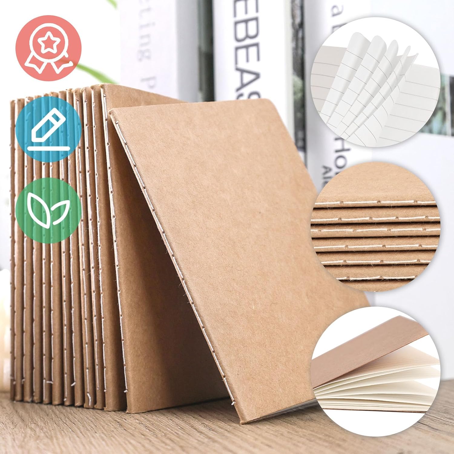 - Package Content: 24PCS Kraft paper journal notebooks with lined pages, 60 pages/30 sheets total 1440 Writing Pages and 80gsm paper.