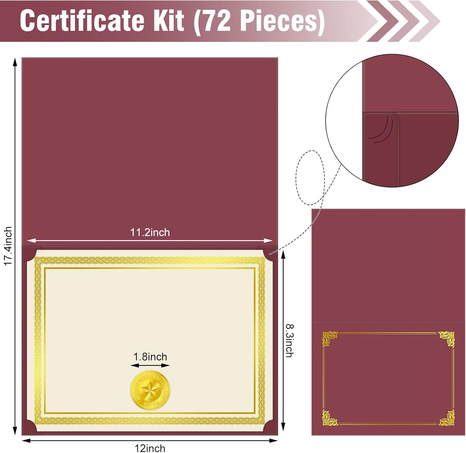 - Size Details: the size of certificate holders is in approx. 22 x 30.8 cm/ 8.66 x 12.13 inches, size of diploma certificate paper is in approx. 21 x 28.5 cm/ 8.27 x 11.22 inches, and the diameter of seals is in approx. 4.5 cm/ 1.77 inches; They are suitable for your daily using, please confirm size details before your purchasing