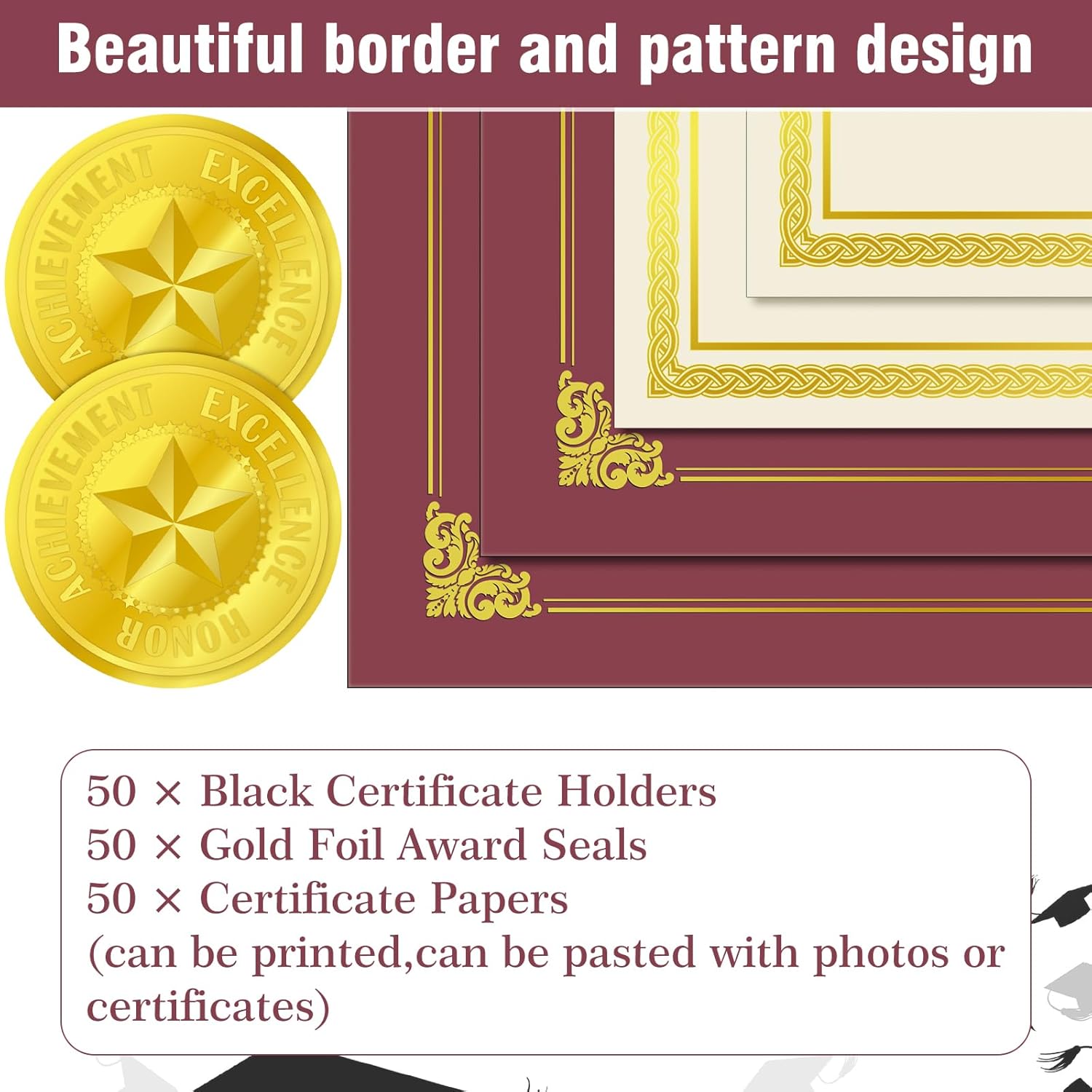 - Delicate and Beautiful: these diploma covers are designed in stylish appearance, with gold foil border, mainly made of reliable paper material, in line with most people's aesthetic, and are suitable for most people to use