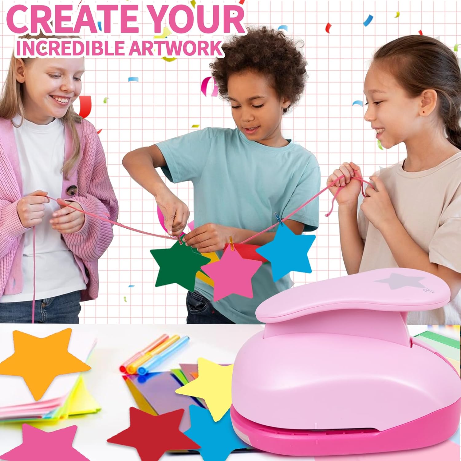 - Wide Application -- 3 inch star punch is simple to use and will make perfectly shaped designs from card-stock, paper, cardboard, felt, foam, etc. Do not use sticker paper, adhesive vinyl, thin paper, soft paper and tissue paper. Star punch 3 inch to get beautiful star, make your handwork no longer monotonous.