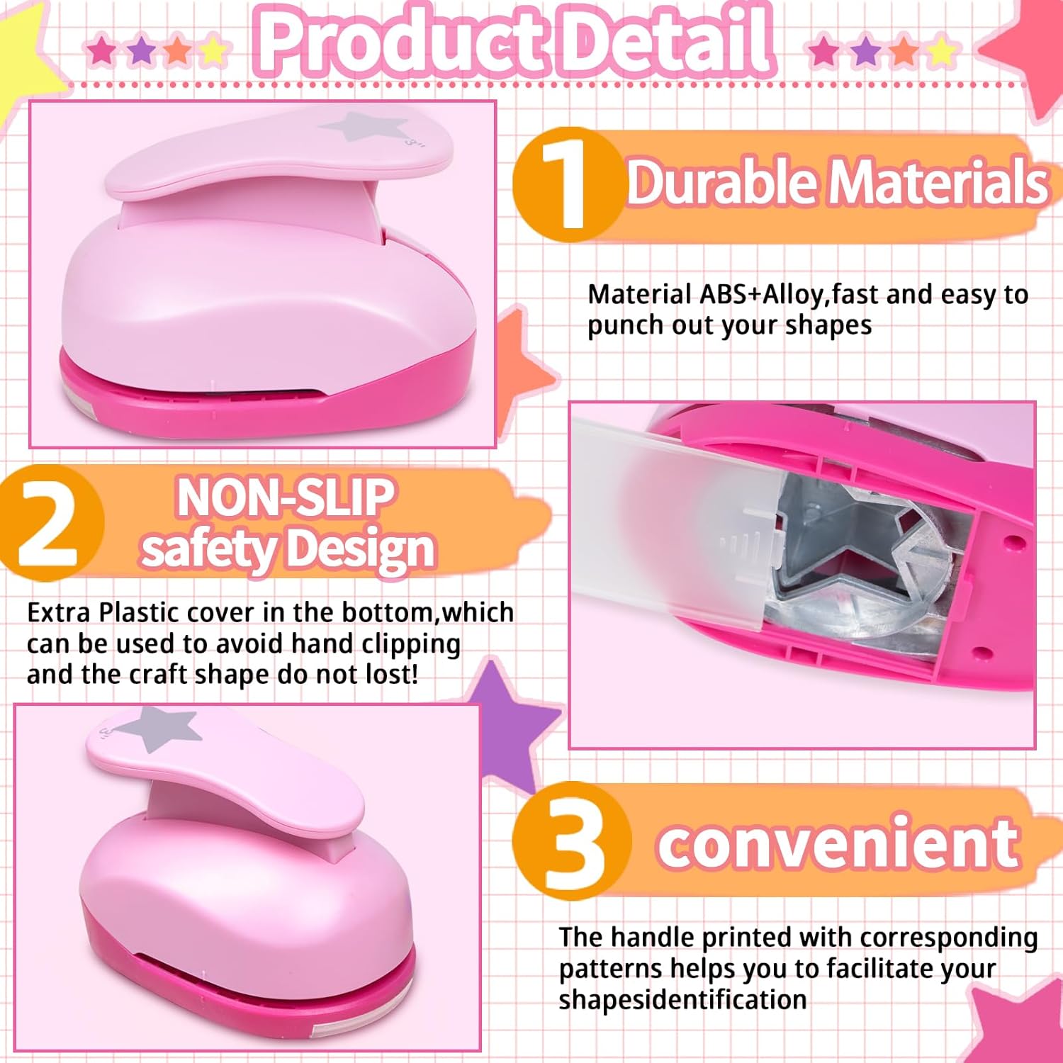 - Easy to Use -- The 3 inch hole punch with spring-action lever makes the craft star punch easier and comfortable to use, easy to get star shape from card-stock, craft punch cleanly every time for consistently great designs. Great craft supplies for you.