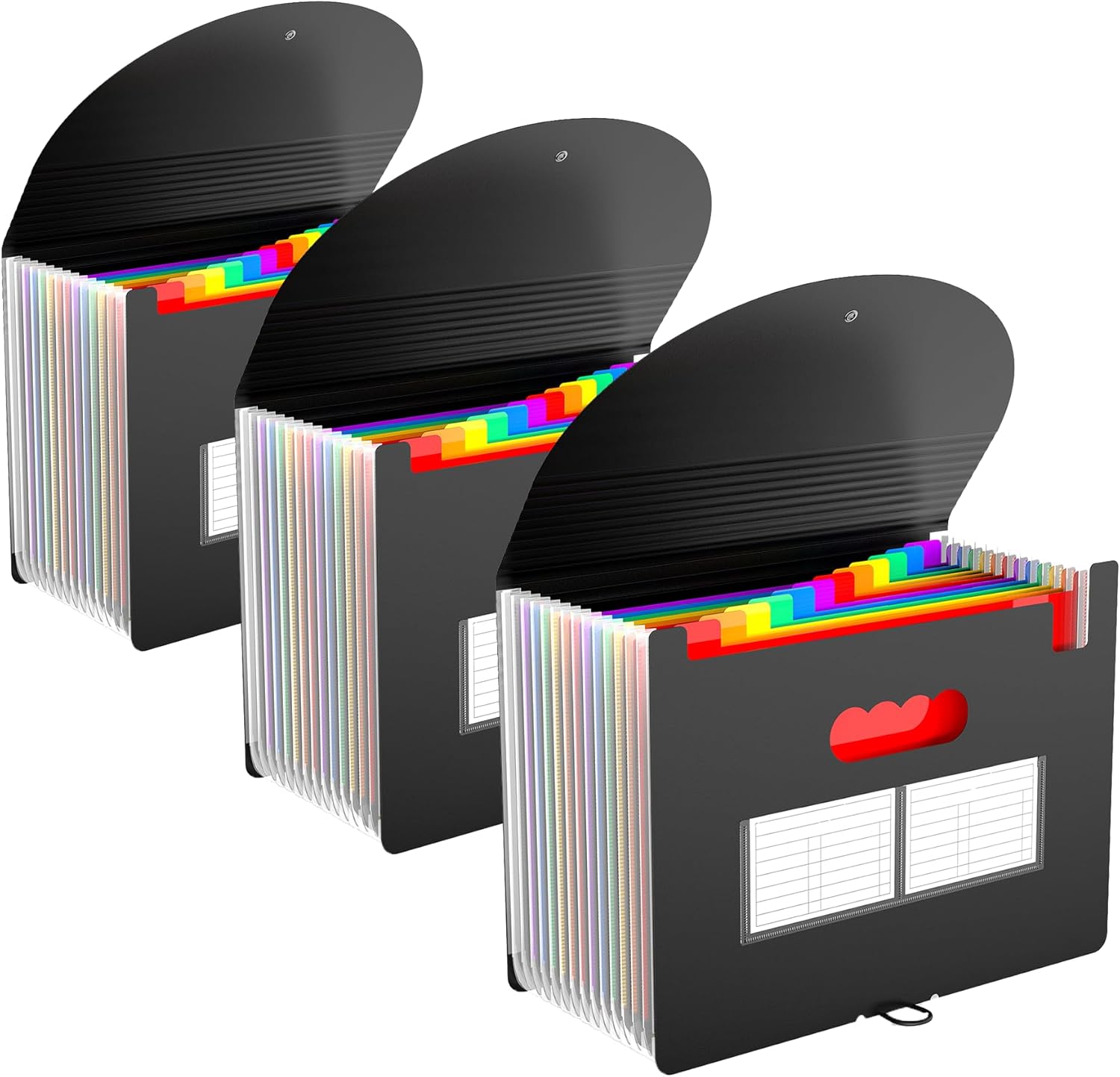 3 Pack Expanding File Folder with Blank Label, 12 Pocket Accordian File Organizer Document Storage Organizer, Desktop Accordion Folders File Keeper A4 Letter Size for Home School Office