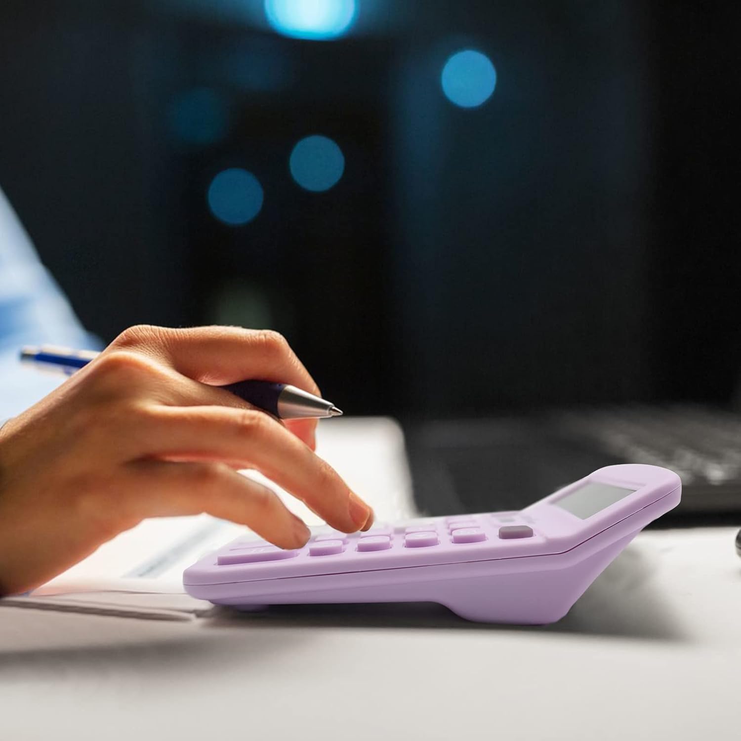- Quality & Appearance, Basic standard purple calculator is made of durable ABS to ensure normal daily use; The candy-colored design and reasonable button layout make it beautiful and practical, perfect size, fits right on the desk and does all you need in a tight spot.