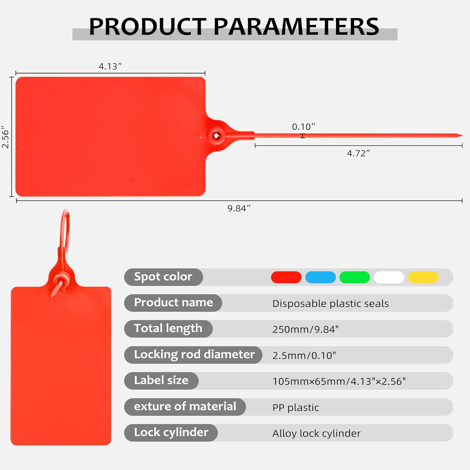- Easy to use: The big label ties tags is single used and self-locking design. Each tamper proof security seal tags is equipped with metal locking mechanism inside. Just simply insert the tail and pull tight to lock. No tools needed and cannot be pulled out once locked.