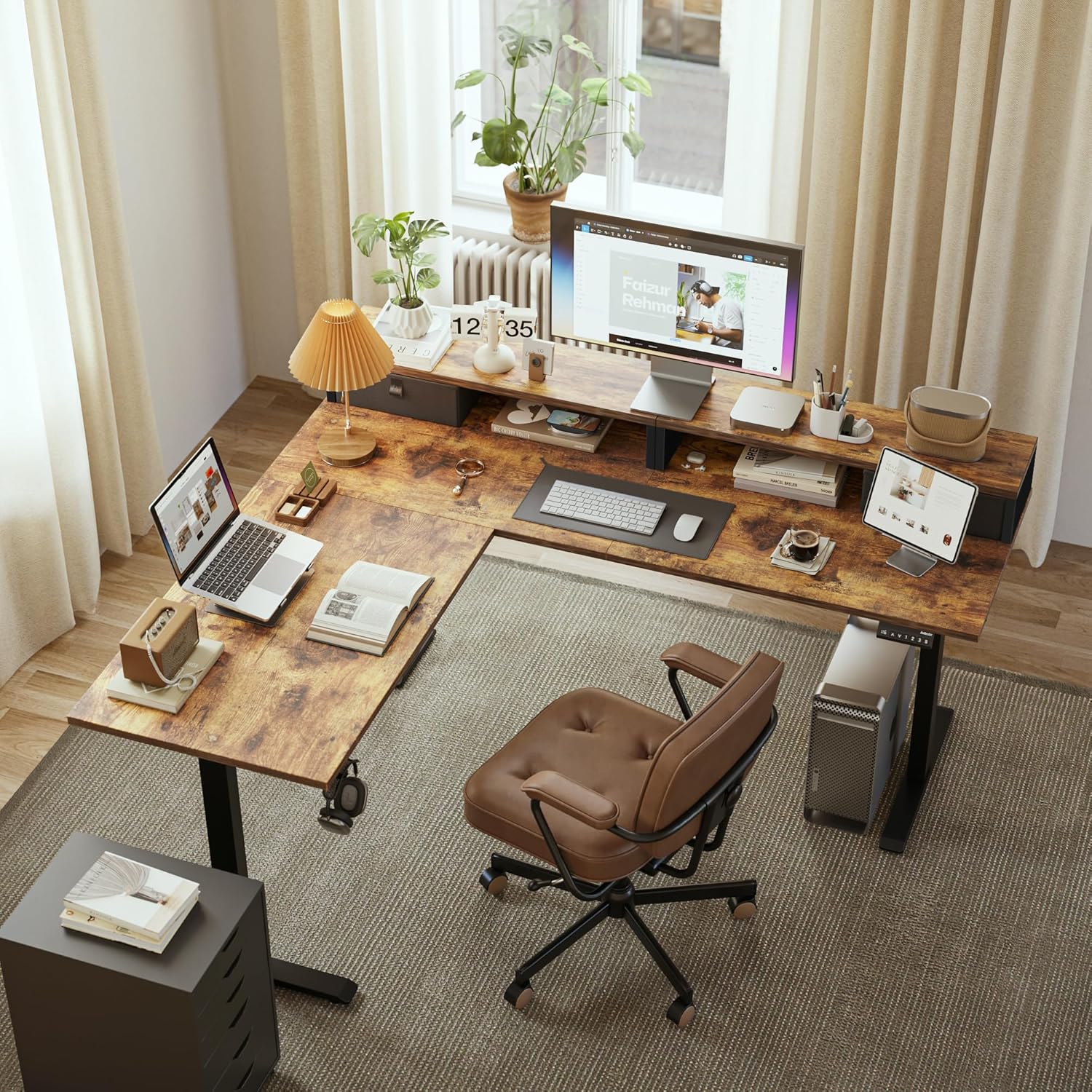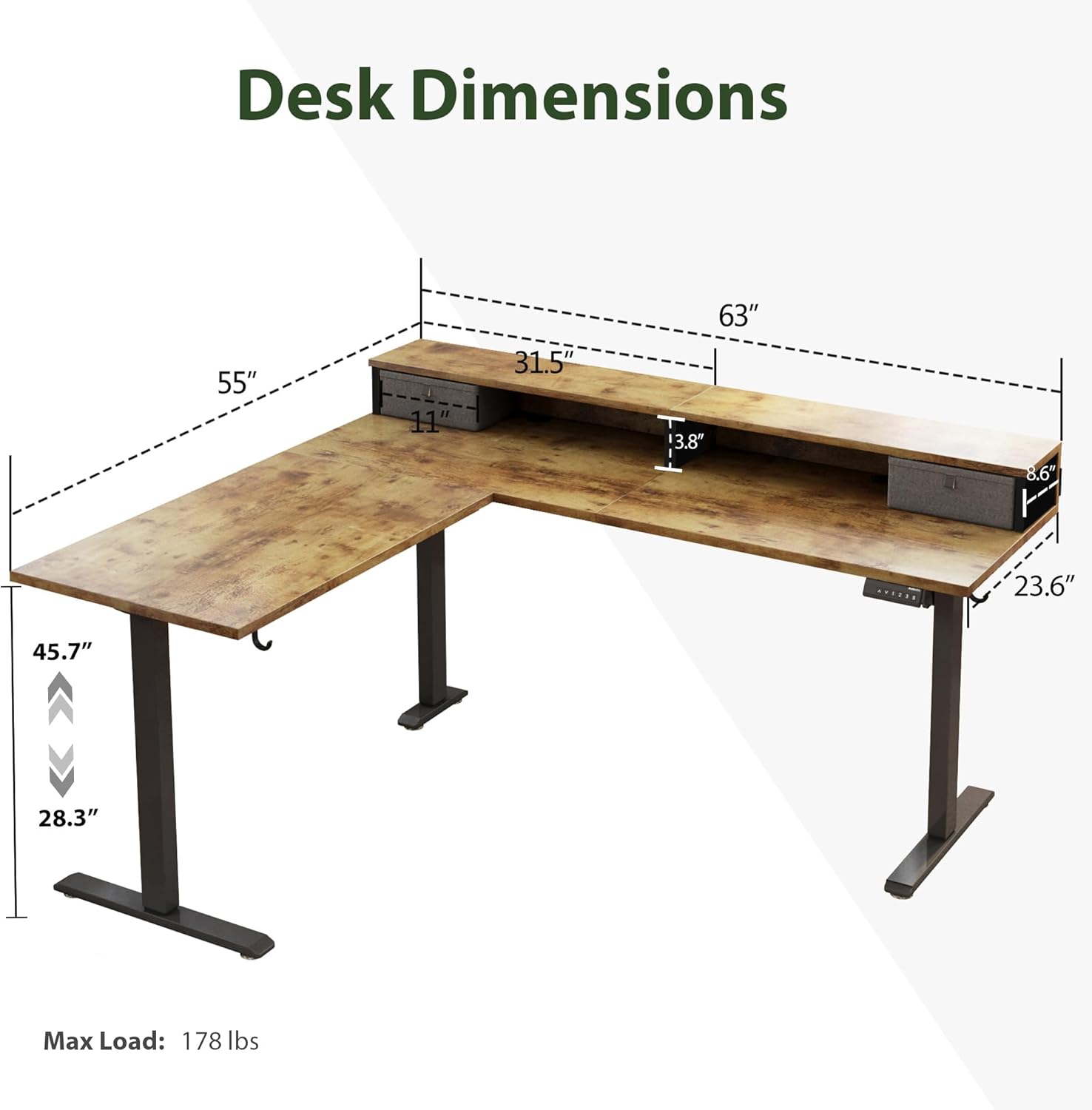 Agilestic L Shaped Electric Standing Desk with 2 Drawers, 63 Inch Ergonomic Adjustable Height Desk with Storage, Corner Desk Sit Stand up Computer Table for Work Office Home, Rustic Brown