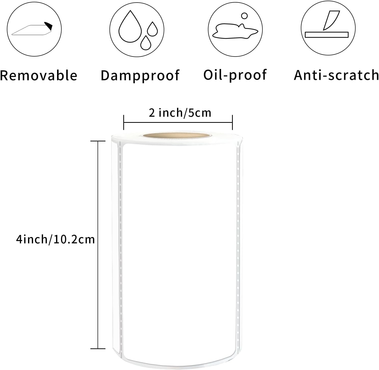 2×4 Inch White Removable Thermal Labels,Waterproof Thermal Label,250 Sheets per Roll with Perforated Lines