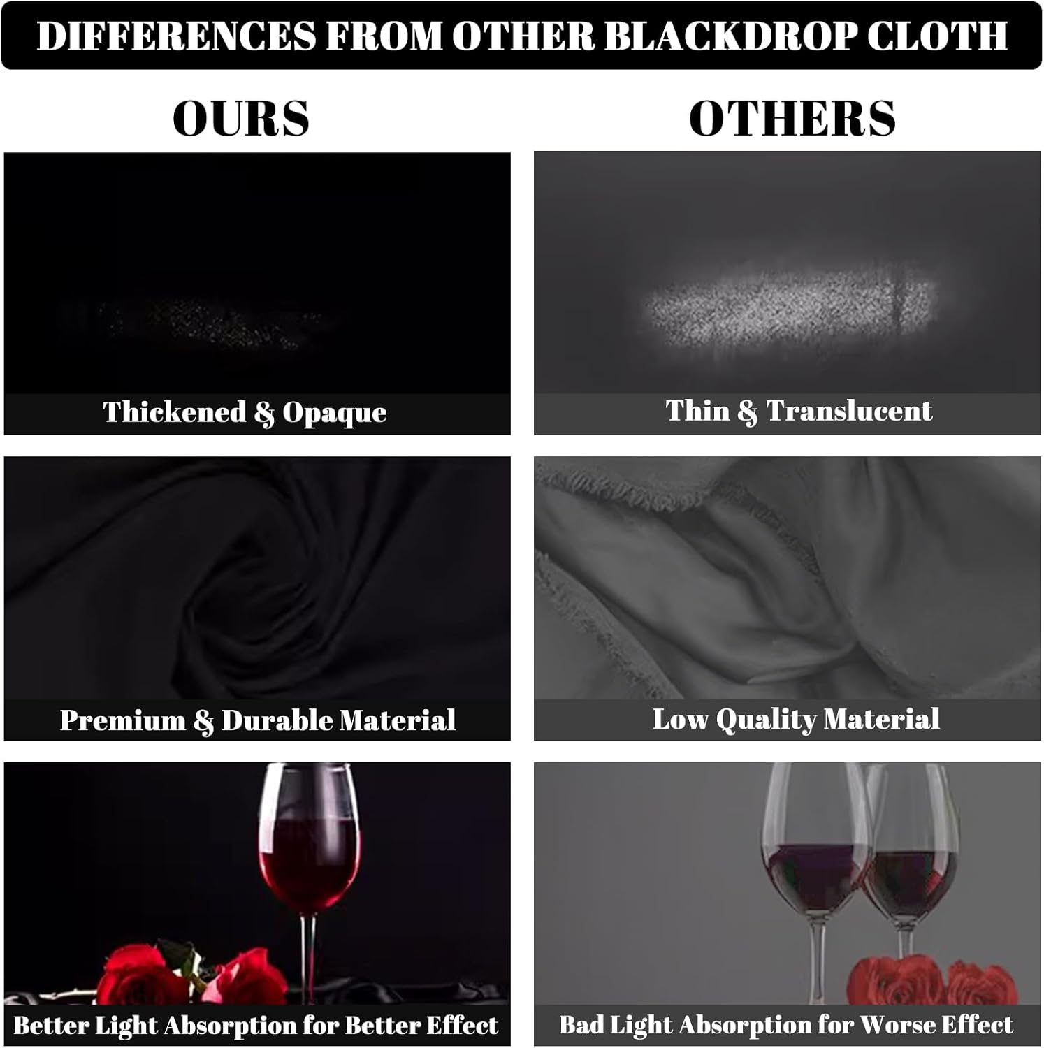 - NON-REFLECTIVE - This pure black background with a non-reflective surface is designed for portrait photos, photography shooting, making videos. Create a sense of advanced and mysterious, making the video more textured