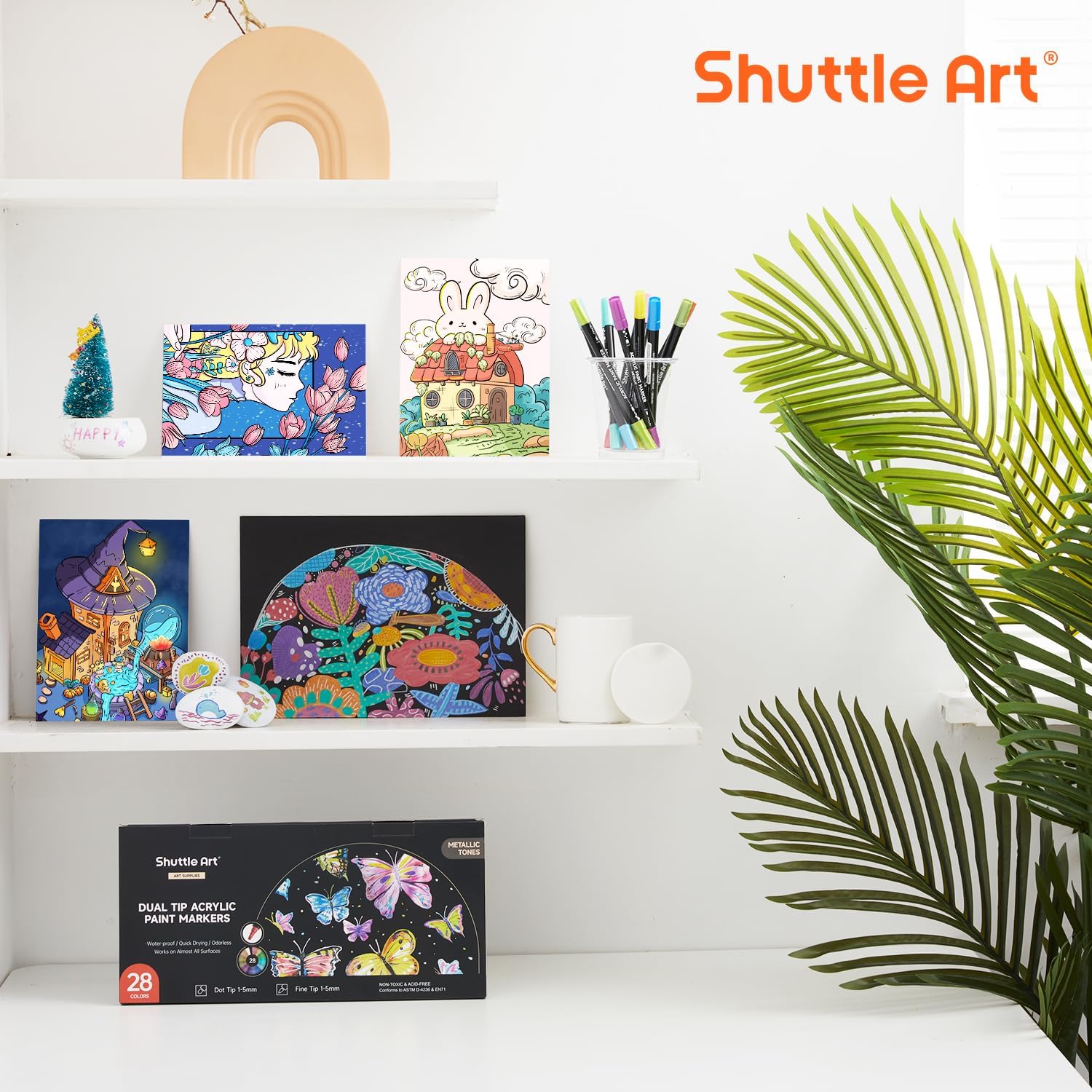- ă28 UNIQUE AND METALLIC COLORSă: Shuttle Art 28 acrylic paint markers set contains 28 METALLIC colors: With so much colors, you can almost complete all of your daily creations.
