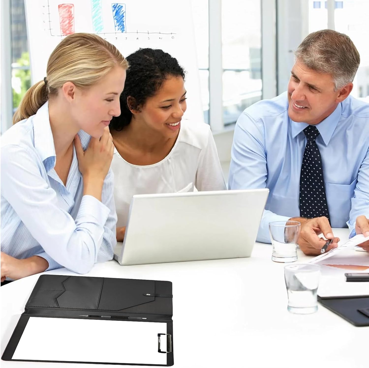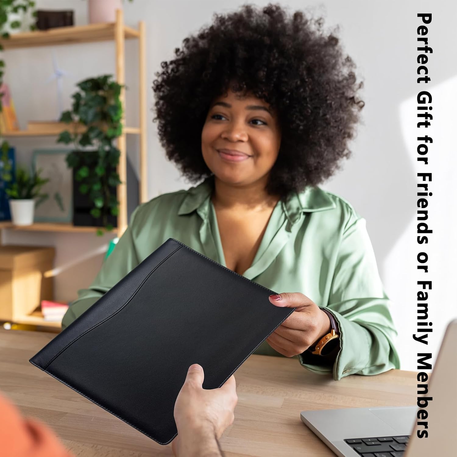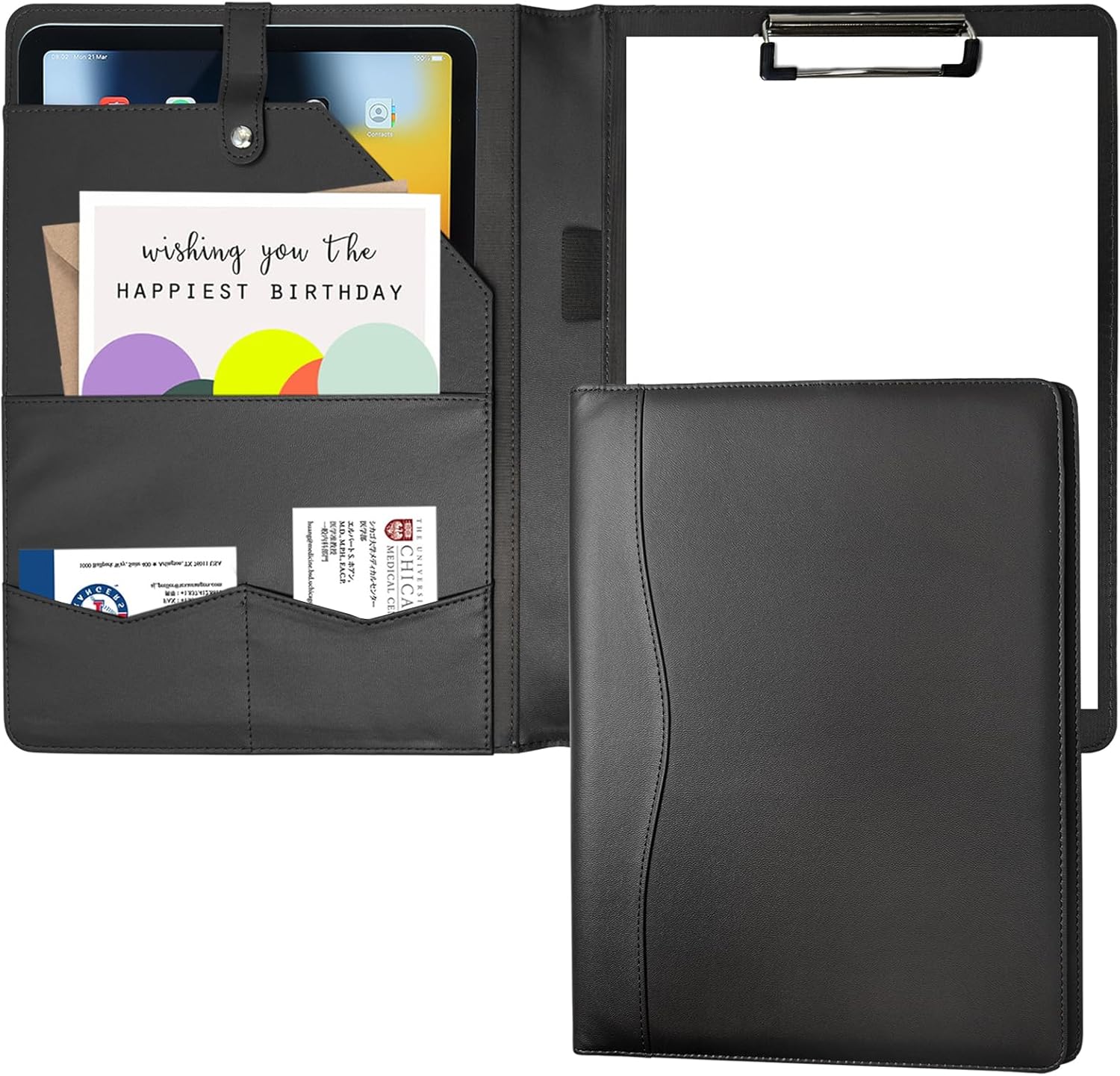 Portfolio Folder Padfolio with A4 Clipboard, PU Leather Portfolio Clipboard Business Binder Writing Clip Board Organizer for Legal Documents Business Card Men Women Black