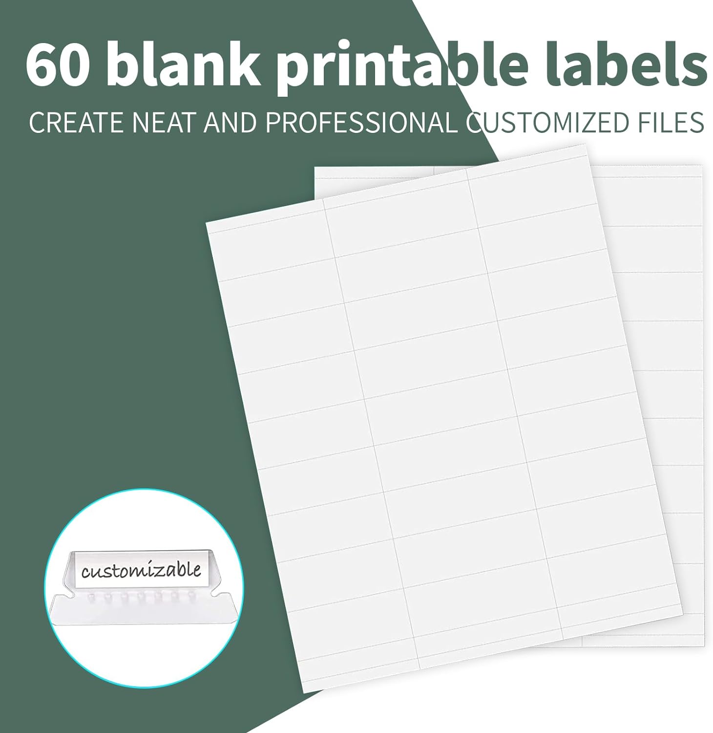 - HANGING FOLDERS SET: Contains 60 extra capacity folders with 60 cardboard supports, 60 printable label sheets and 60 clear plastic tabs.