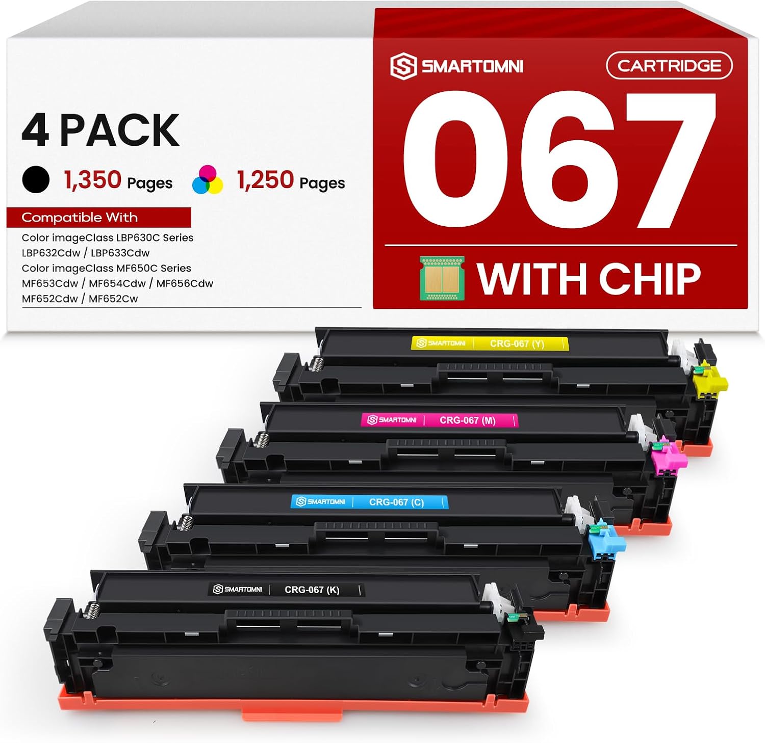 - [PACKAGE CONTENTS] 4 Packs S SMARTOMNI compatible 067 CRG067 toner cartridges (4 Packs - 1Black /1Cyan /1Magenta /1Yellow).