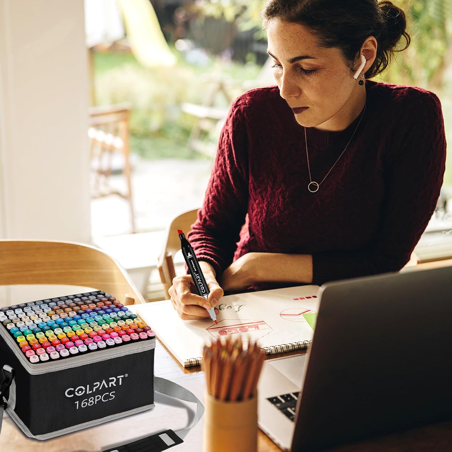 168 Colors Alcohol Markers Brush Tip Dual Tip Art Markers for Kids Marker Pens with Pen Holder and Carry Bag for Adult Coloring Painting Supplies Perfect for Painting, Coloring, Sketching and Drawing