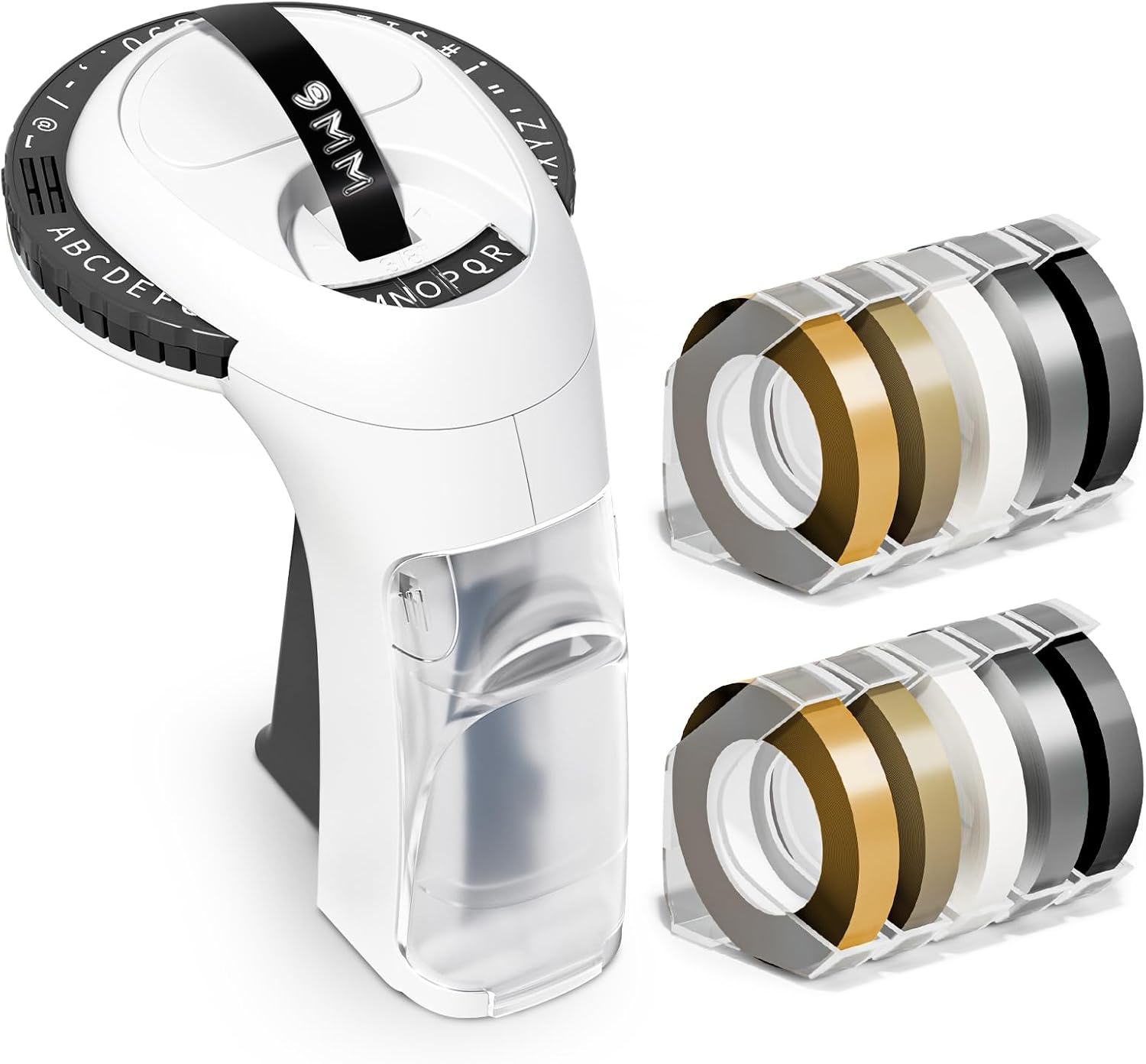 - Package Contents:It will come with a black embossing label maker and 10 embossing label tapes (2 * champagne gold // 2 * gold / 2 * clear / 2 * silver / 2 * black embossing tape) for continuous use