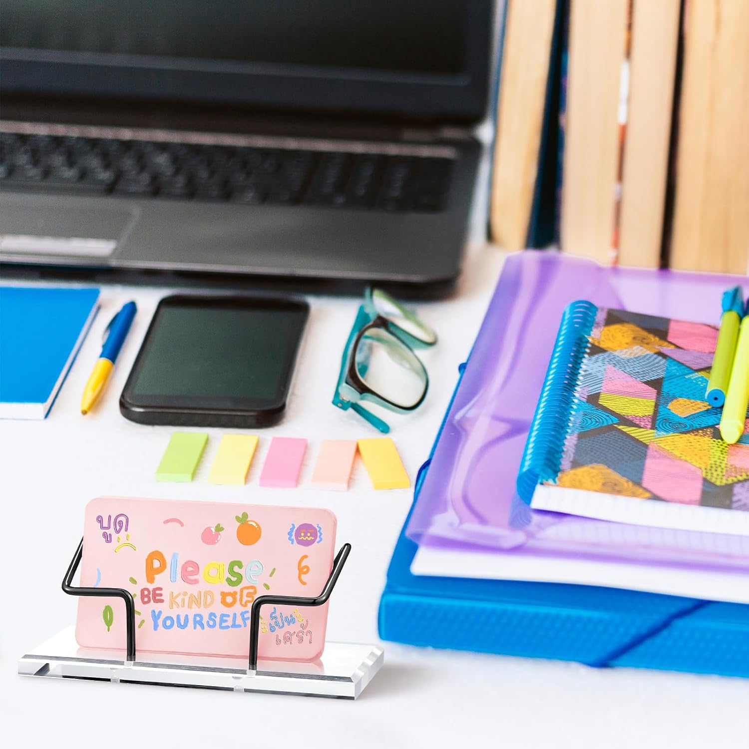 - Reliability and Durability: crafted from acrylic material and a sturdy metal frame, our desktop business card holders are designed to withstand heavy use and ensure long term reliability; These card holders are durable and feature meticulous polishing, making them proper for daily use in business settings; Please tear off the protective film before use