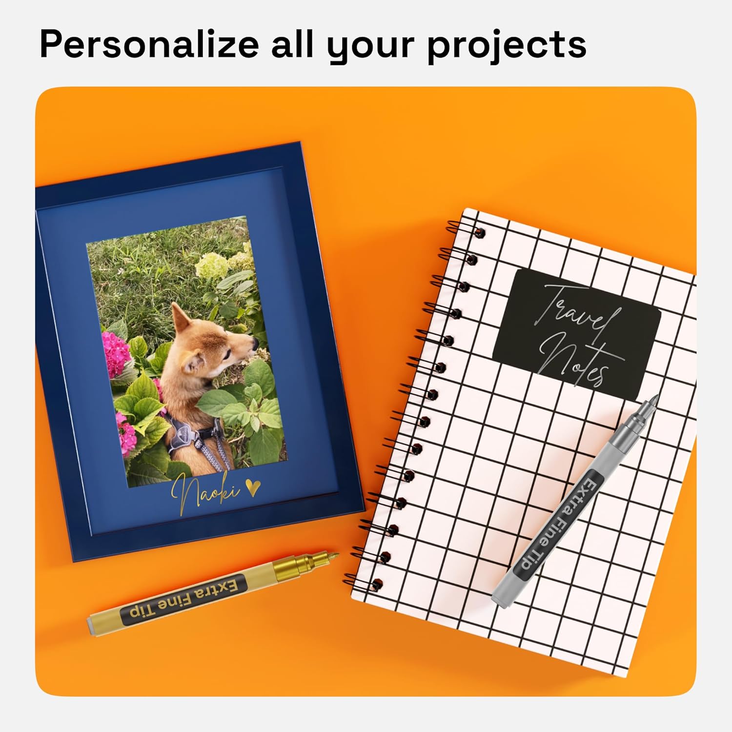 ARTISTRO 2 Gold & Silver Permanent Marker - Waterproof Markers for Tire, Fabric, Rocks, Glass, Ceramic, Wood, Paper - Oil Based Paint Pens - Extra-Fine Tip 0.7mm