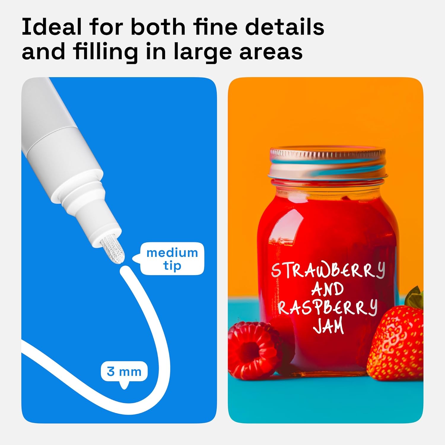 - Multiple Surfaces: Use these oil paint pens as oil markers for plastic and glass or as oil based fabric markers for clothes. Each white marker permanent is water-resistant. They’re also good for leather, vinyl, or epoxy resin. And the nibs are solid, even on rocks!