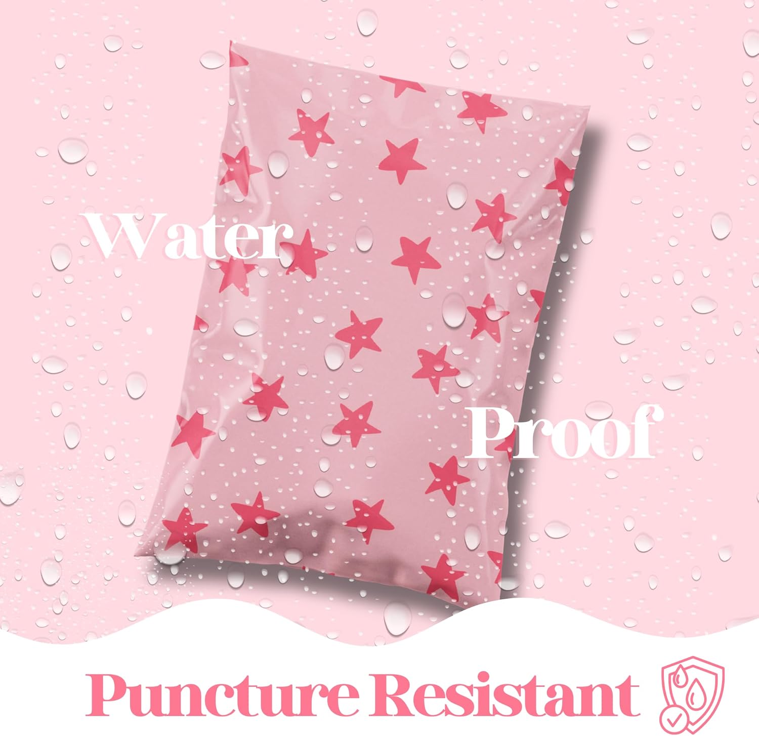 6x9 Designer Poly Mailer 100 Pack Heavy Duty Waterproof Self Seal Shipping Bags for Small Business Large Mailing Envelopes Bulk Tear Resistant Cute Packaging Seeing Stars Pink