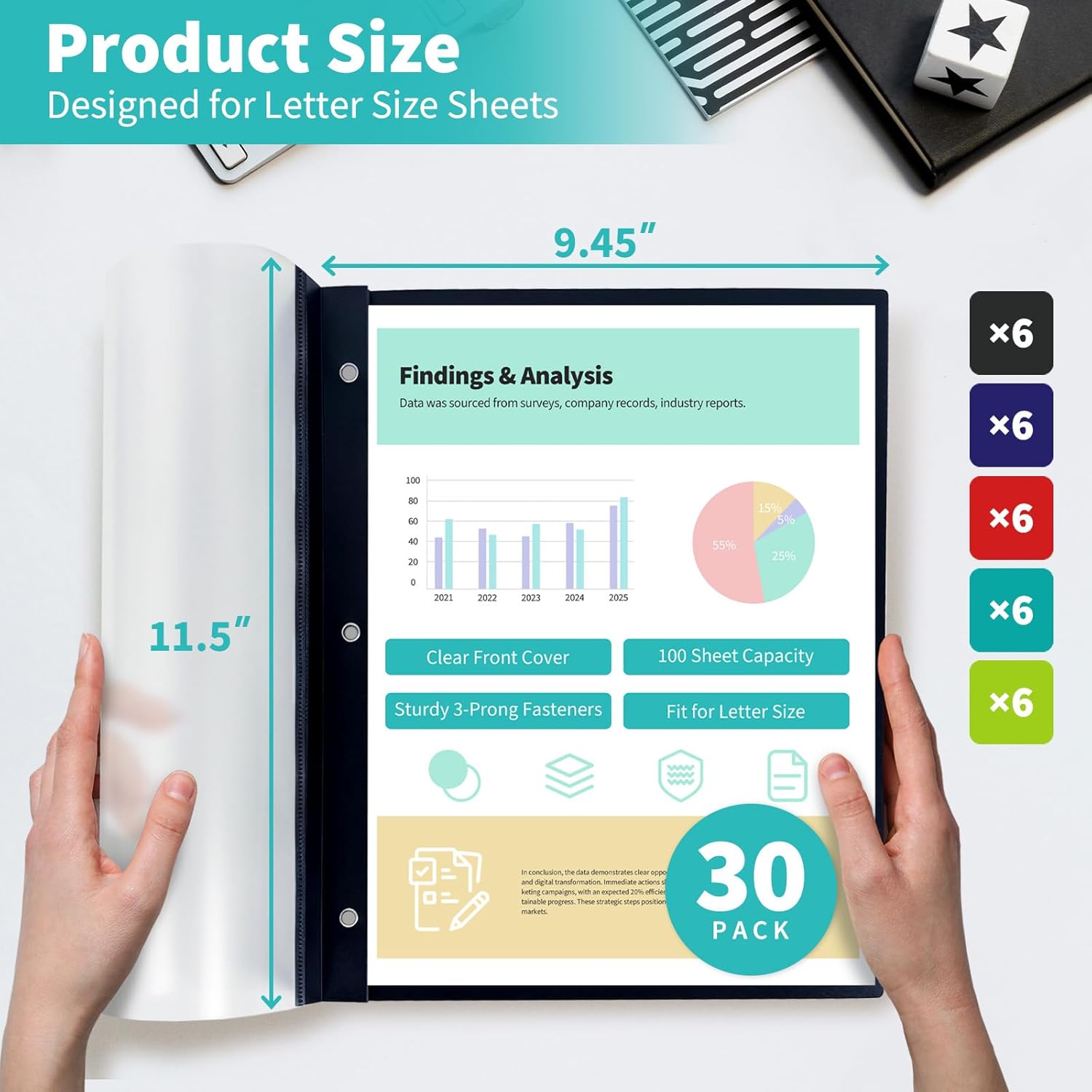 - 【30 Pack for Letter Size】 These report covers with 3 prongs fit standard 8.5" × 11" documents and come in a reusable 30-pack, ideal for class assignments, business reports, or everyday filing. A practical bulk option for school, home, and office users who need structured storage with color-coded convenience.