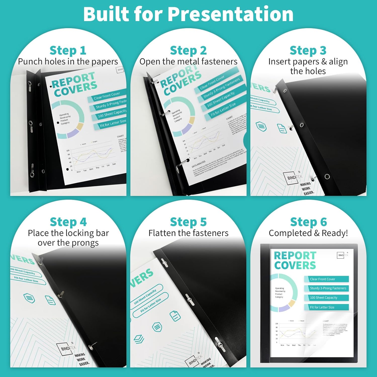 - 【100-Sheet Capacity】 Each folder holds up to 100 sheets of standard 20lb (80gsm) 3-hole-punched paper, secured by three concealed metal prongs. Reinforced edges and a sealed spine keep pages neatly aligned and firmly in place during frequent use.