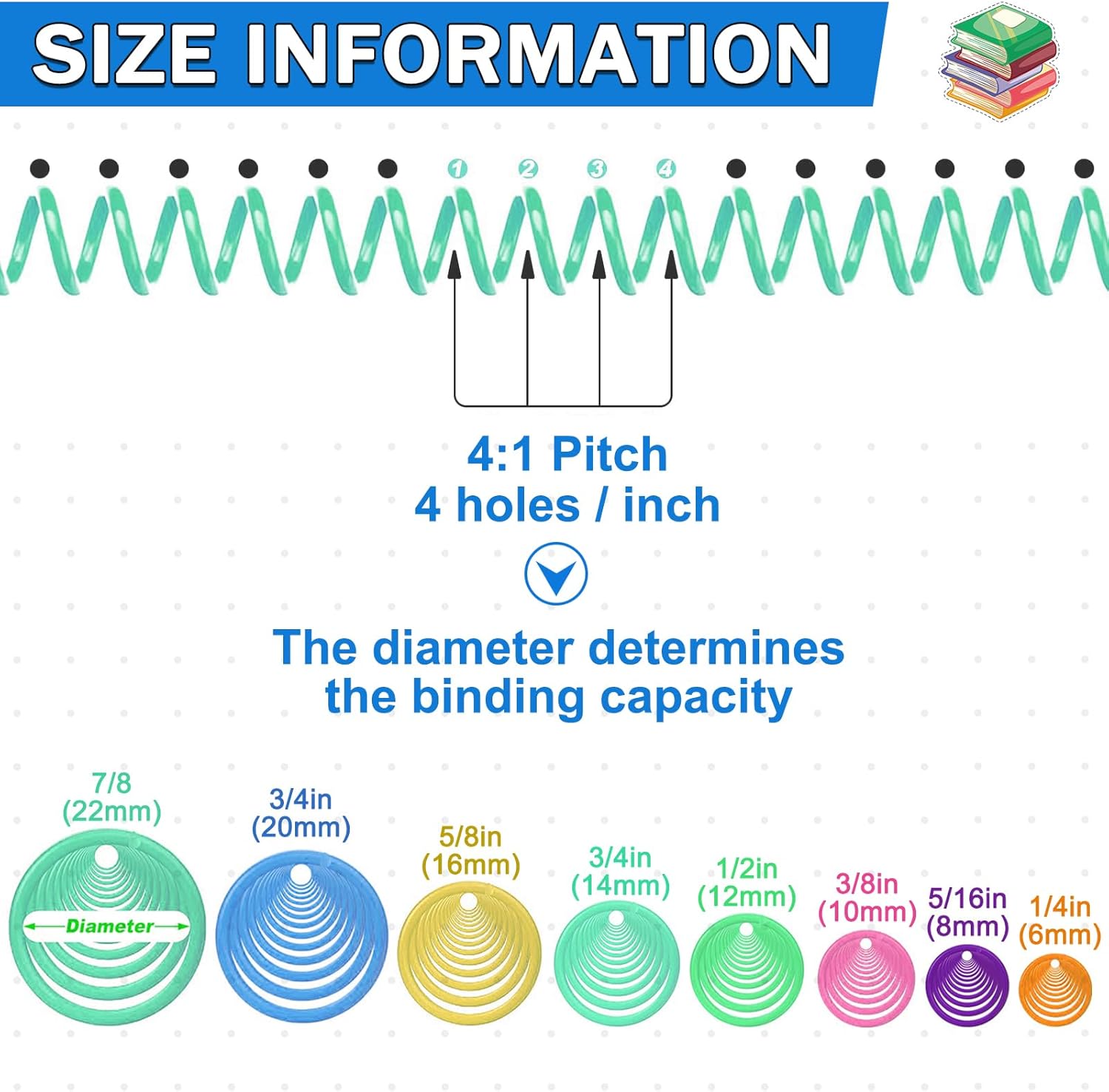 - 【Value Pack】The package contains 120 pieces of spiral binding coils in 8 different sizes, 15 pieces per size, rich quantity and size will meet your daily binding projects' use needs. You can also share with your friends. Fit for most wire binding machines, such as GBC, Trubind, and Fellows binding machines.