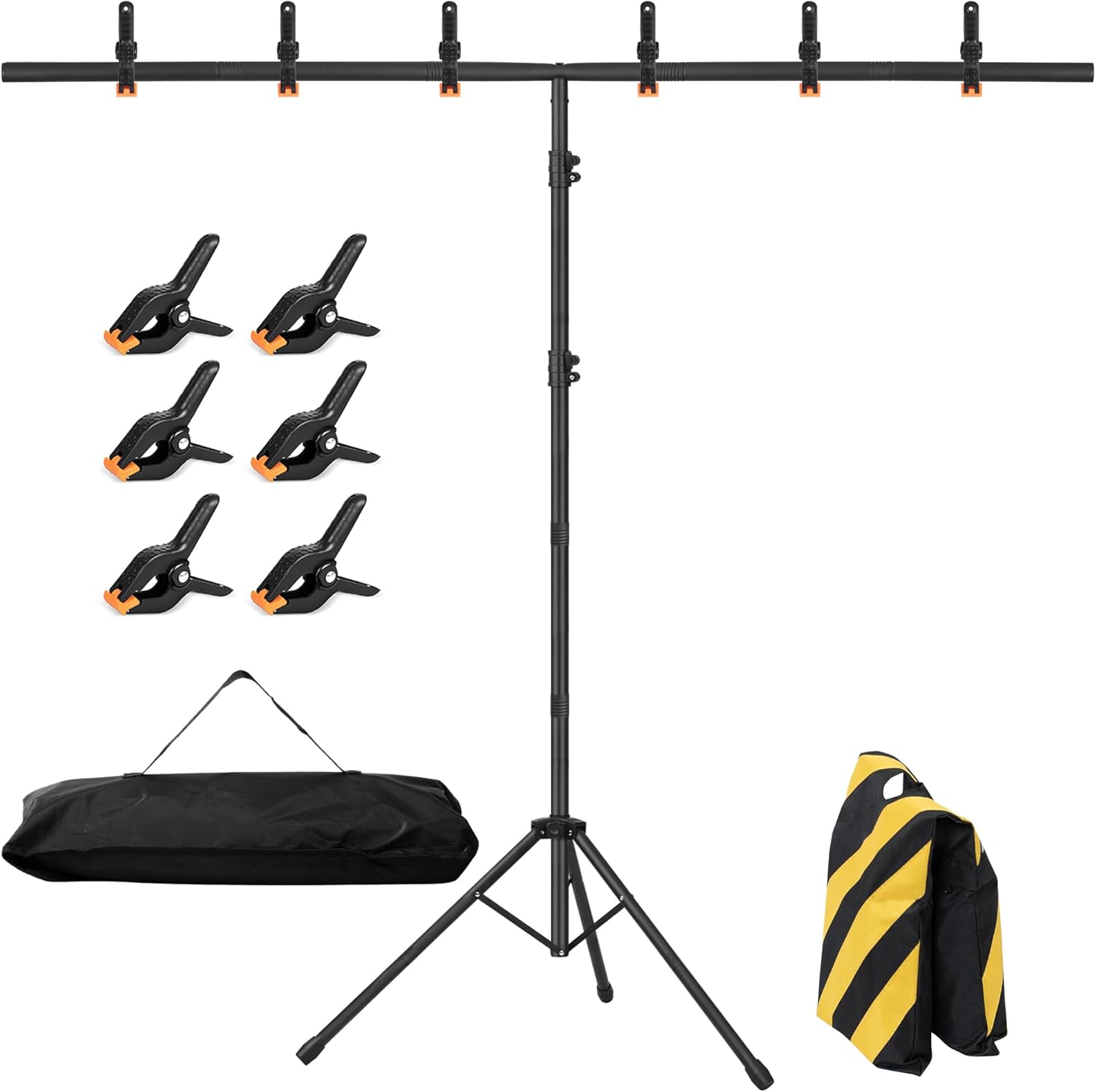 - Package Includes: The backdrop frame stand contains 1x backdrop stand, 6x spring clamps, 1x sandbag and 1x carry bag.