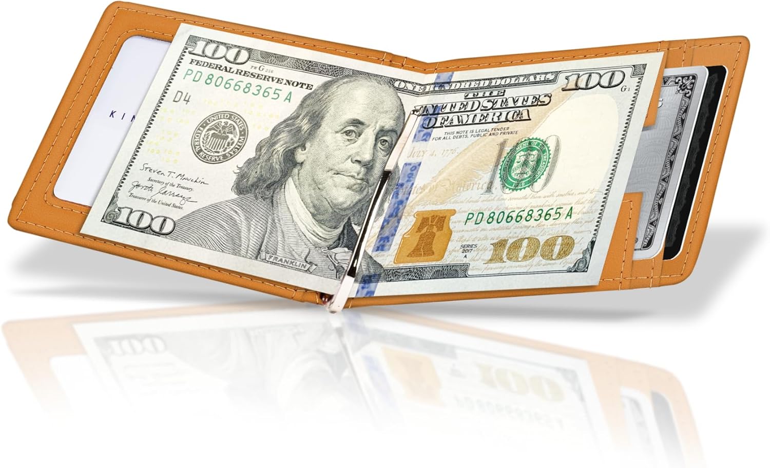 Kings Loot Money Clip Slim Minimalist Wallet for Men – RFID Blocking Leather Design with Money Clip – Front Pocket Bifold Holds 12 Cards – Stylish & Compact Wallets (Cognac)