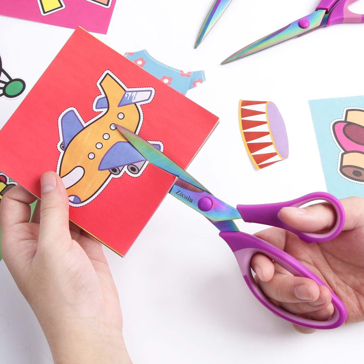 - 9-Pack Iridescent Titanium Coating Blades Scissors: Suitable for high/middle school students and teachers in school classroom, office, household use. different colored scissors can be used in different places