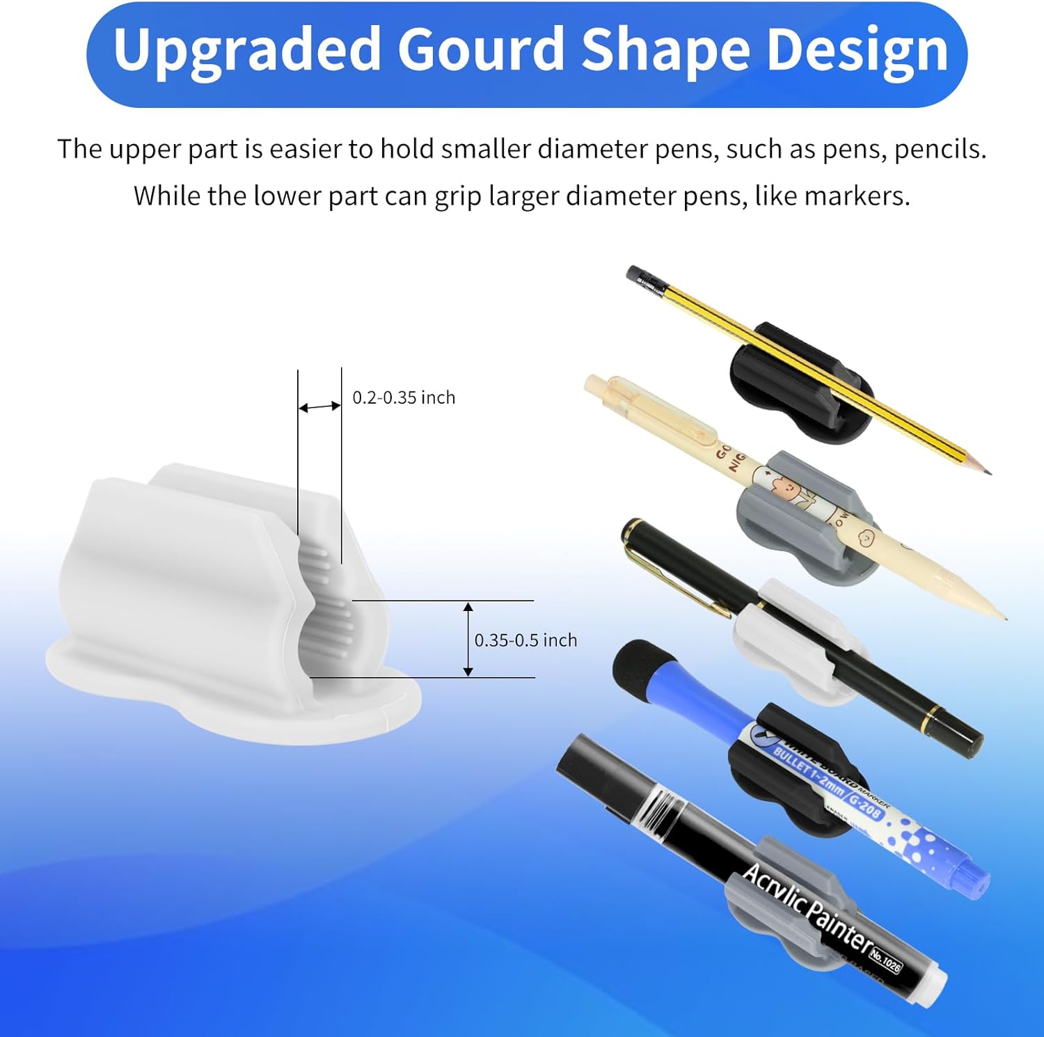 - ăUnique Dual-Hole Design & Anti-Slip Strips InsideăOne of the best features of our pen holders is its dual-hole design which accommodates both slim and thick pens securely. That means the upper hole is perfect for smaller pens like pencils, stylus and ballpoint pens, while the lower hole is great for larger pens like markers and fountain pens. And there are anti-slip strips inside, keeping your pens from doing the usual slide-out or fall out