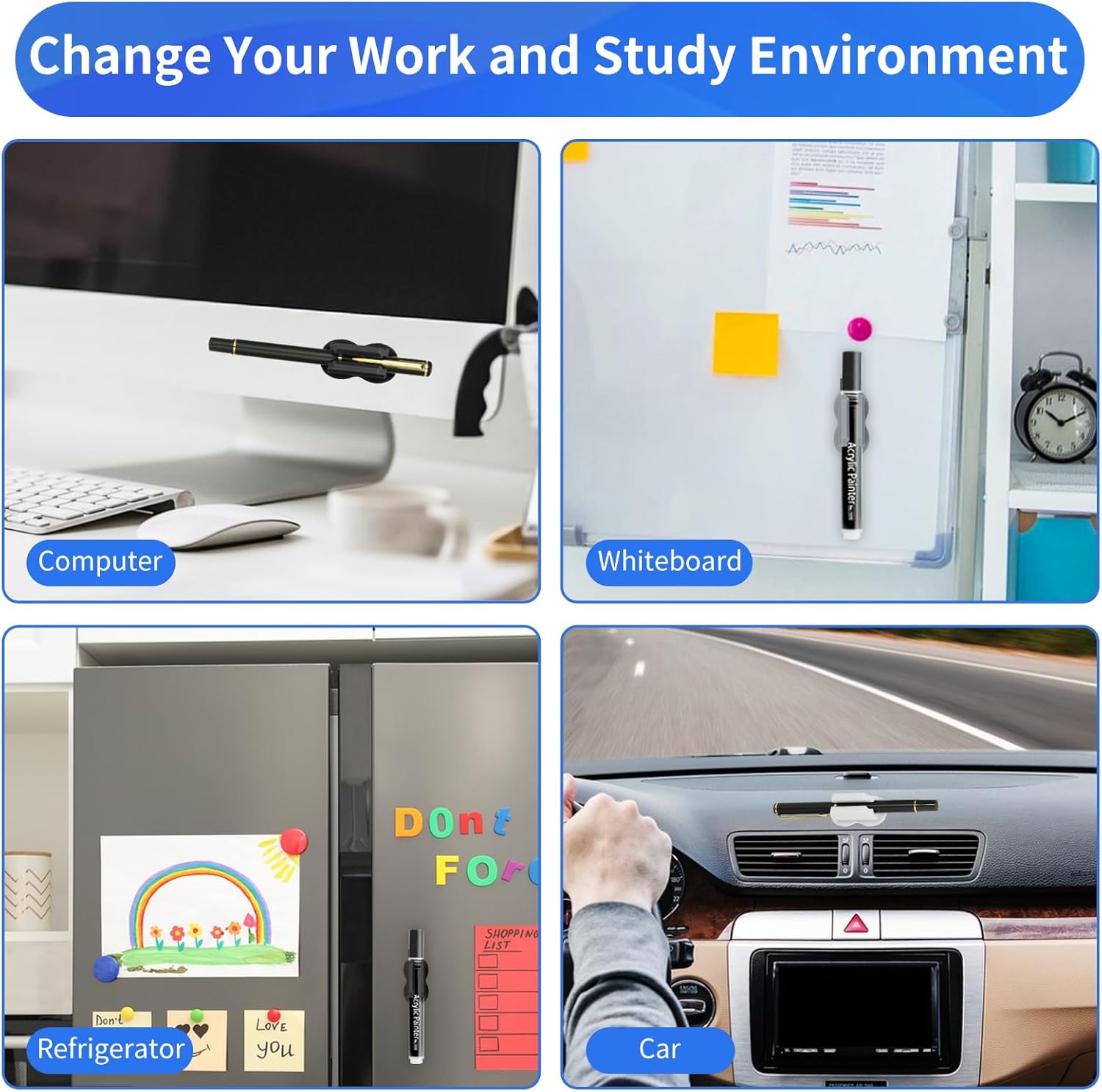 - ăSpace Saving & No More Searching For A PenăWe offer 12pcs adhesive pen holders to keep everything organized. Adding these pen holders & pencil holders to the areas where we regularly use pens throughout the house, office, and classrooms, etc. They make pens, pencils, and markers available without cluttering our space. No more lost pens, No more pens rolling off desks