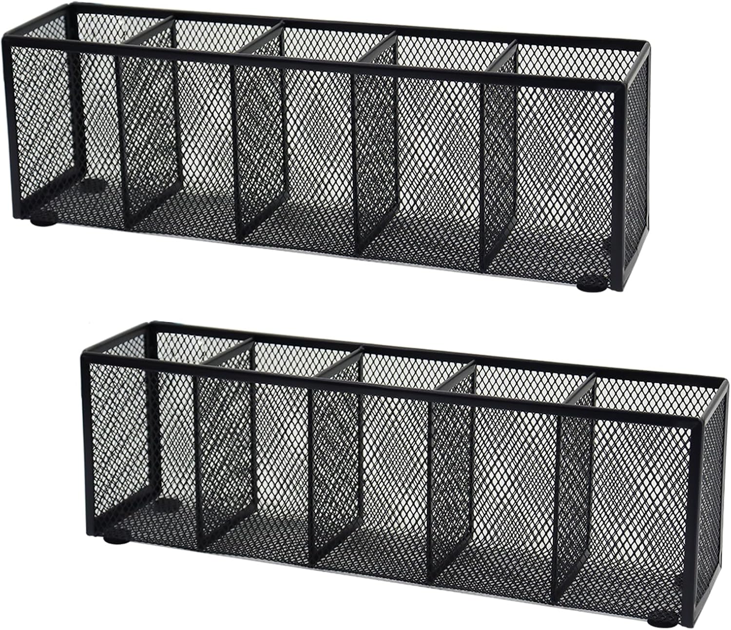 2PCS Black Mesh Pen Pencil Holder, Small Metal Desk Organizer Desktop Stationery Office Supplies Acessories Storage Stand, 5 Compartments Brushes Holder for Home School Classroom Teachers
