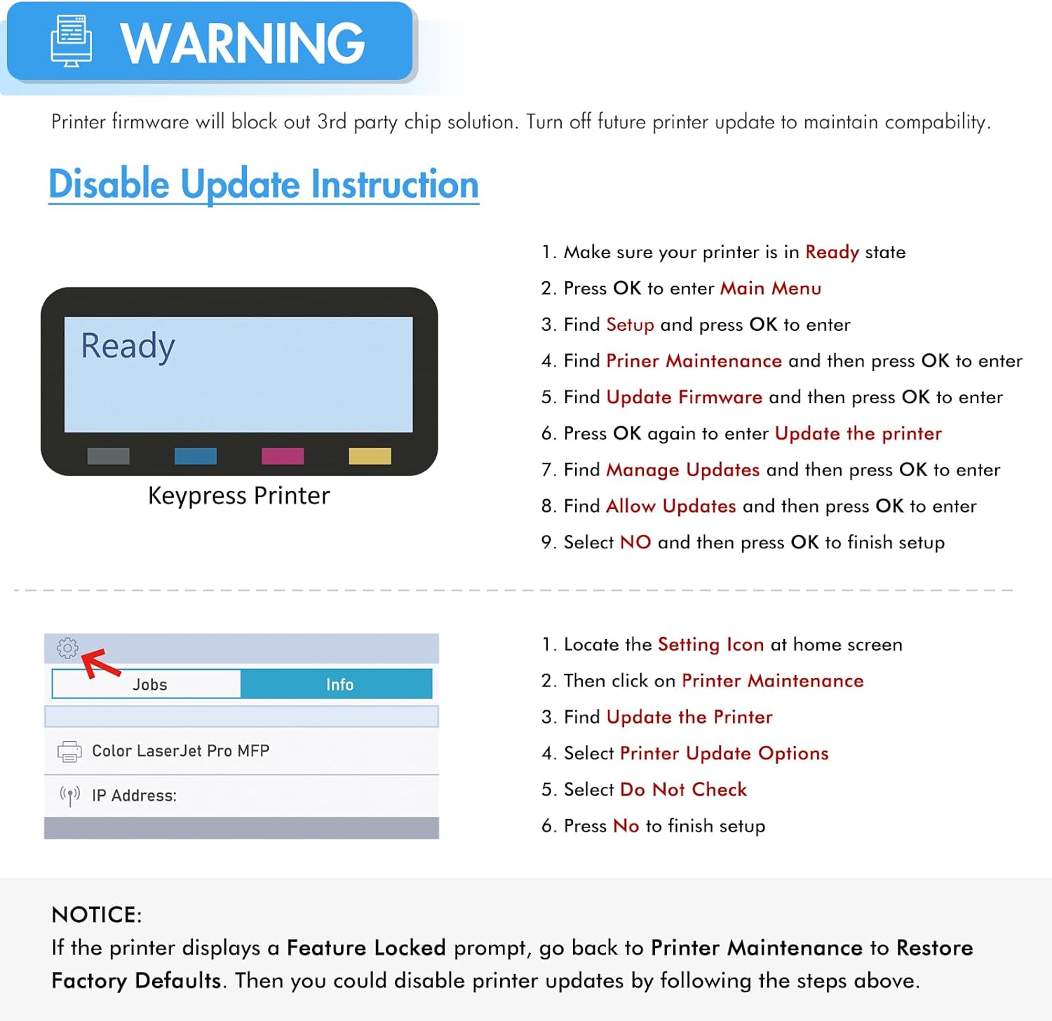 - Color : 414X Toner Cartridges 4 Pack with chip